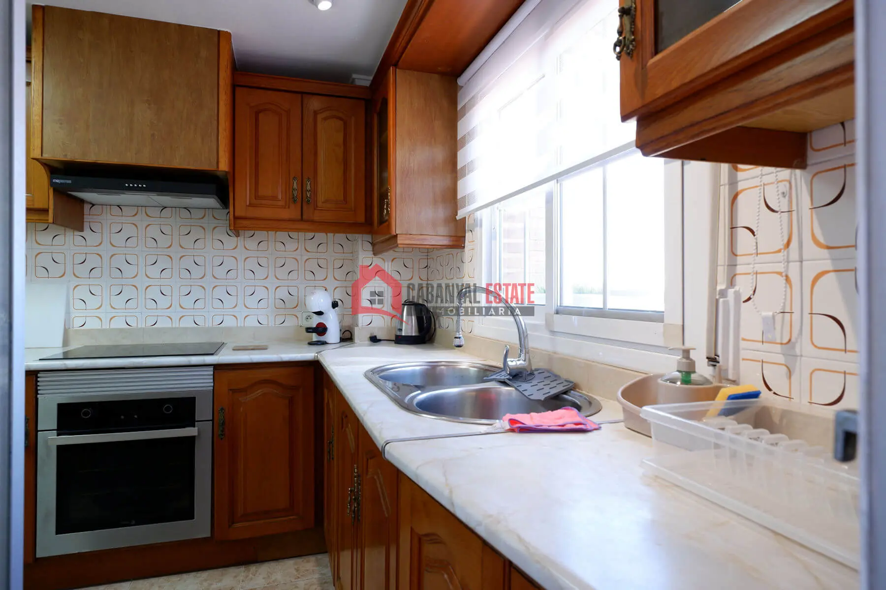 The independent kitchen is equipped with modern electric appliances, plus a separate laundry room for added convenience.