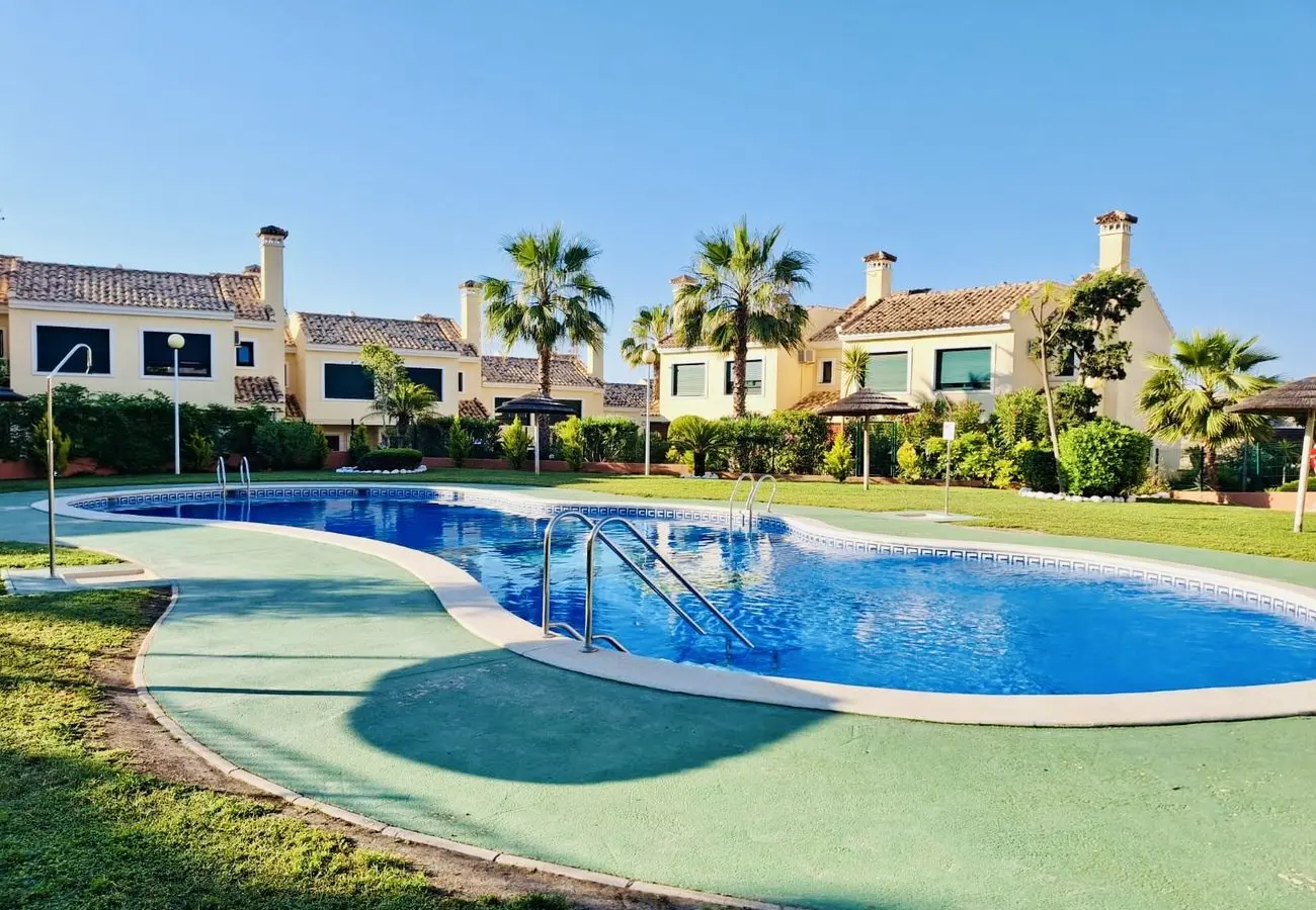 This stunning 2-bedroom, 2-bathroom apartment, located on the ground floor of a prestigious urbanization, offers the perfect blend of luxury and comfort. With its south-facing orientation, you will enjoy abundant natural light and a warm, inviting atmosphere all year round. Step into the spacious 45 m2 living room, ideal for relaxing or entertaining guests. The separate, fully equipped kitchen comes with a convenient utility room, keeping everything within easy reach. Both bedrooms are equipped with air conditioning and feature en-suite bathrooms, ensuring maximum privacy and comfort. The built-in wardrobes offer plenty of storage space, and the large sunny terrace of 21 m2 boasts breathtaking views of nature—perfect for outdoor dining or simply enjoying the tranquility. This apartment can be sold fully furnished and is part of a well-maintained community with beautiful gardens and a fantastic communal pool. Just minutes away, you will find top golf courses such as Campoamor, Villamartin, Las Ramblas, and Las Colinas. Also, enjoy the proximity to La Fuente shopping center with various restaurants, stunning beaches just 4 km away, and the vibrant Zenia Boulevard.