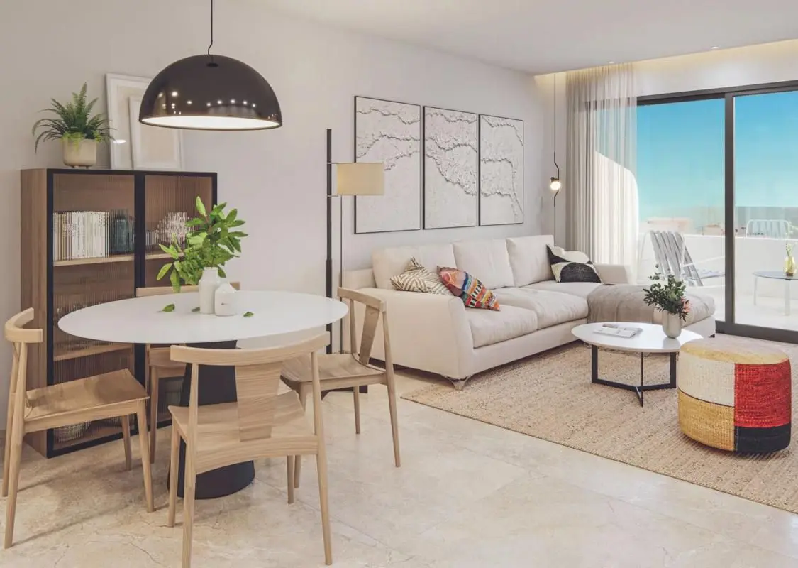 The development consists of 56 properties featuring two or three bedrooms and two bathrooms, including various property types such as duplexes and penthouses with solariums and large terraces with sea views. This new project in Torrevieja is an exclusive complex situated on the main avenue. With a prime location only 300 metres from the best beaches and close to all amenities—restaurants, cafes, supermarkets, and a shopping centre—it`s just a five-minute walk to the bus station and Torrevieja town centre. It`s an exceptional and unbeatable setting, making it one of the best places to live or invest with future prospects as one of the main avenues connecting the urban centre of Torrevieja with the beaches is expected to become a pedestrian avenue. Residents will be able to enjoy coastal walks, breathing fresh air and listening to the waves breaking on the shore. For all these reasons, this development is the perfect place to live year-round, enjoying the tranquility of the beaches while having access to all the services our great city of Torrevieja has to offer. The development consists of 56 properties, including two and three-bedroom residences with two bathrooms and various property types, such as duplexes and penthouses with solariums, large terraces with stunning panoramic sea views, or private terraces for ground-floor apartments with direct access to communal areas. These homes are constructed with the finest materials, carefully selected to ensure low maintenance and sustainable building practices, always environmentally friendly, and compliant with the Technical Building Code. This innovative complex design is based on providing all residences with similar quality, regardless of their location within the building. A large structural void has been incorporated into the block overlooking the main avenue, allowing all properties to have a visual connection with it. This grand void also serves as a powerful vantage point from the external communal area, enabling light and sea breeze to flow into the pool space and its surroundings, creating an immense communal balcony to bask in the sunny days our coast enjoys all year round. Additionally, all properties have dual orientations to ensure cross-ventilation, allowing natural airflow, with east and south-facing orientations providing sunlight to all residences. The complex features access points from two streets, two lifts servicing the residences and garages, and a communal swimming pool with a waterfall. It also includes a communal toilet and a storage room for pool furniture during winter, surrounded by ample greenery cascading from planters in stairwell areas and around communal zones, creating a natural space intended to foster an atmosphere of peace and tranquility. There is also a communal room designed for holding community meetings and gatherings.