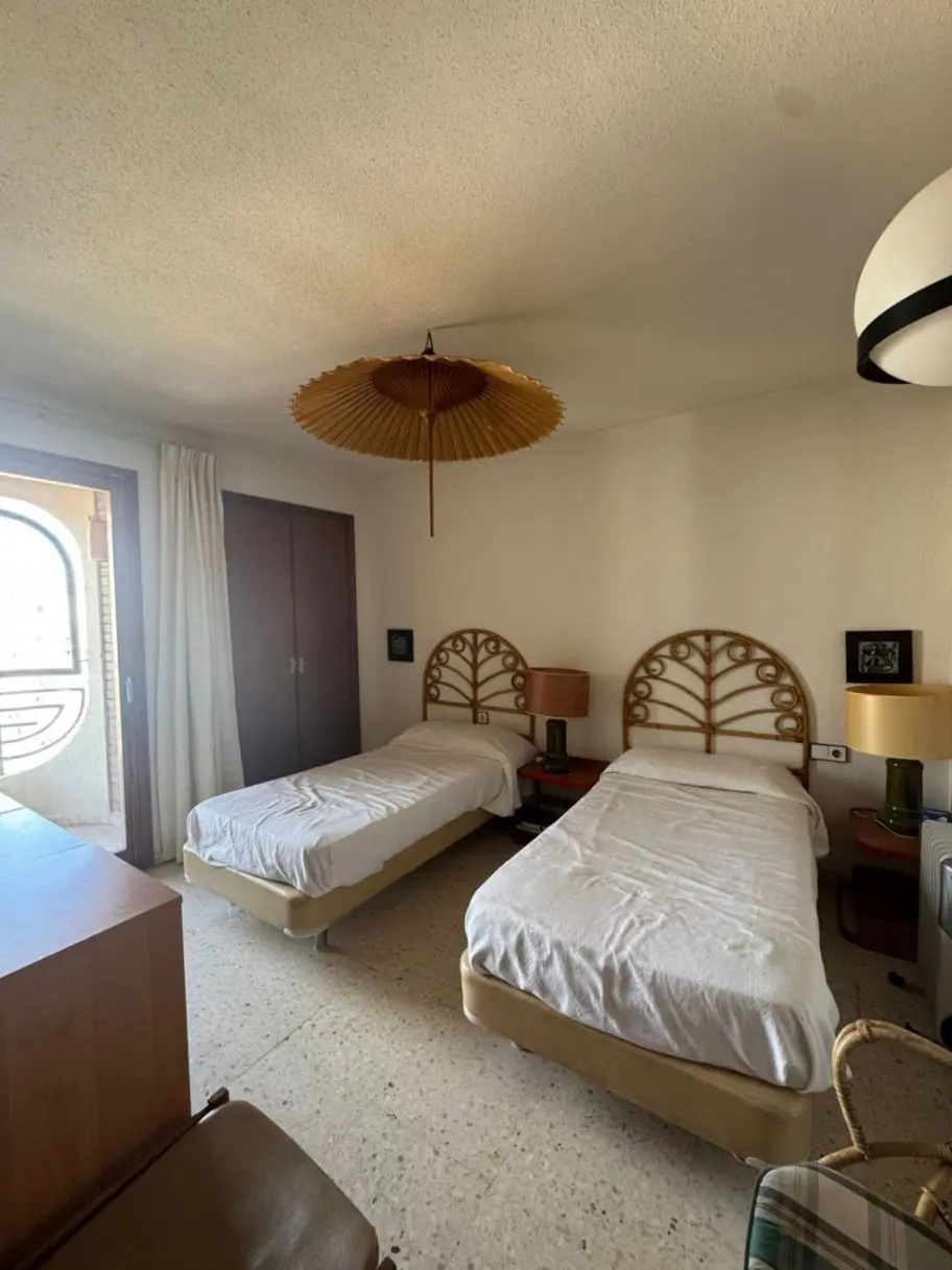 Frontline beach Levante in Benidorm. Apartment with 3 bedrooms, bathroom, and toilet.Bedrooms 1 and 2 with terrace. Large L-shaped terrace on the south and west facades, with the possibility of a fourth bedroom.Residential complex with community pool and children`s playground with slide and swings.