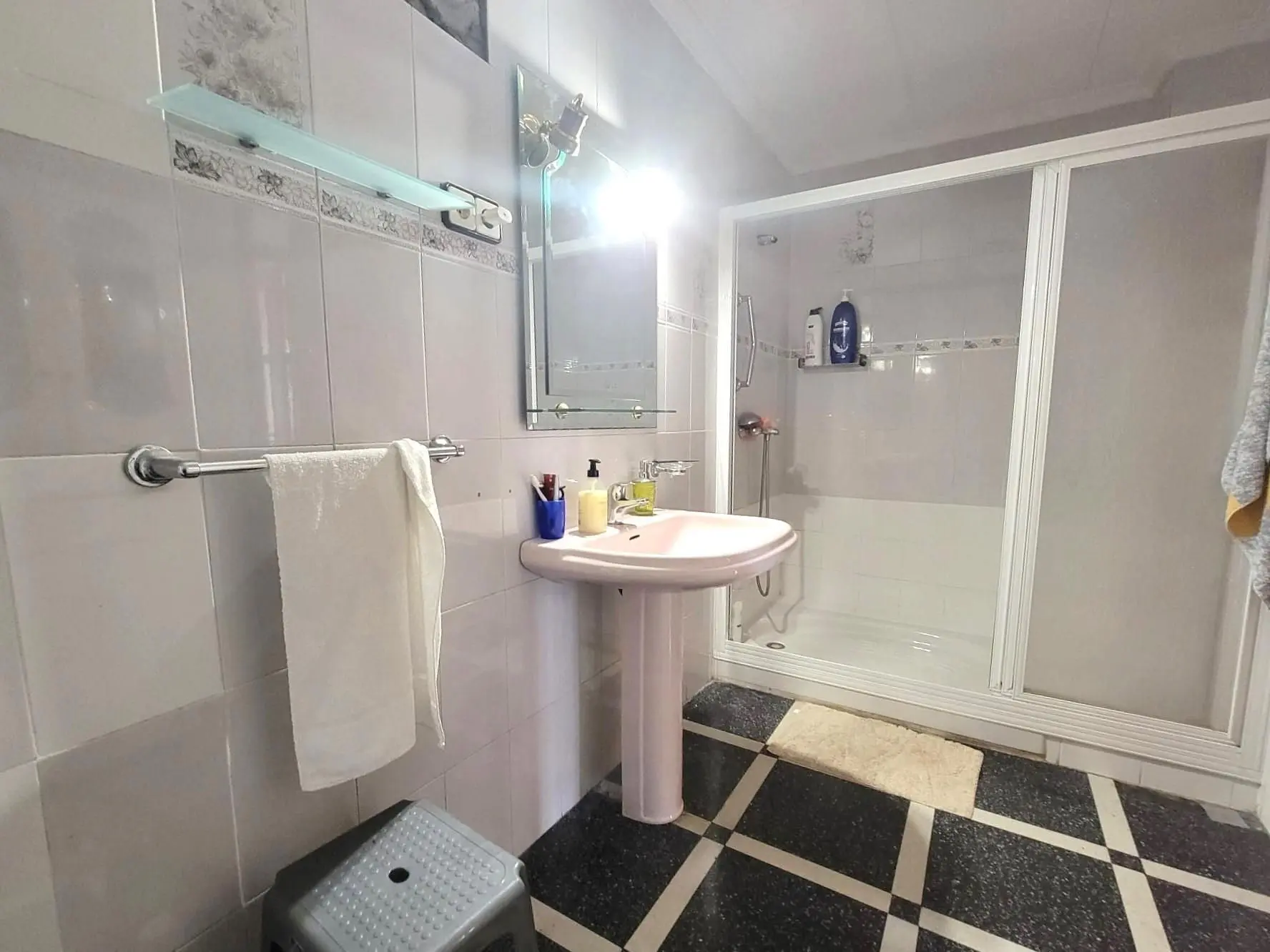 Spacious apartment located in the city center, about 200 m from the Promenade and the Natural Pools. It consists of an entrance hall, a spacious living room with large windows and a terrace, a fully equipped separate kitchen with a pantry room (with a sink, washing machine,…), two double bedrooms, a simple bedroom and two bathrooms (one with a shower, the other with a bathtub). Furnished. Wardrobes in the bedrooms. South and West facing. Elevator in the building. Perfect location, close to all amenities, restaurants, cafes, shops, supermarkets, bus stops, the new leisure area of the Port of Torrevieja and about a 10-minute walk to the beach Playa del Cura.