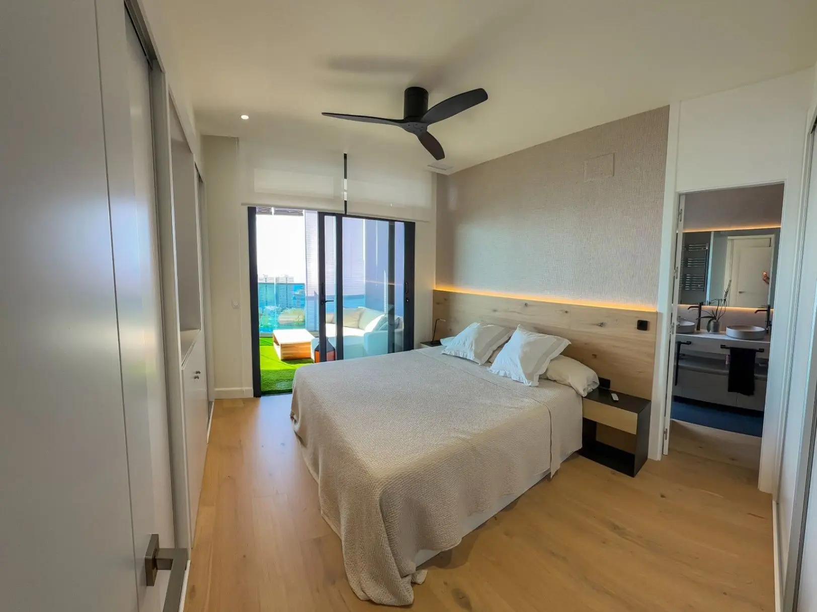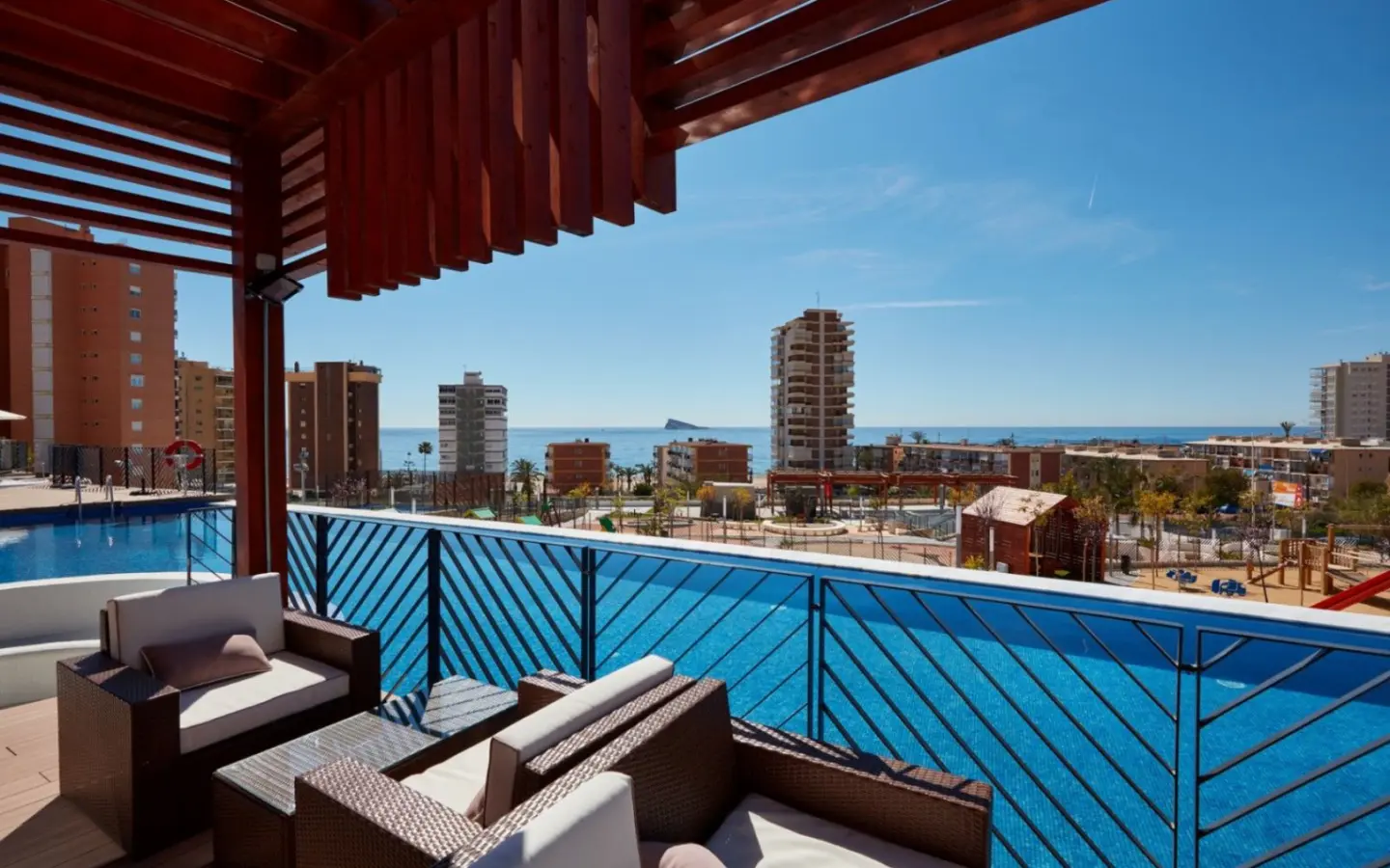 These exclusive three-bedroom apartments are located in the heart of Poniente Beach, in a building that stands out for the exceptional quality of each of its finishes. This spacious apartment, situated in a prestigious residential area, offers a unique experience that combines modern design, comfort, and sea views, making each stay special. The property features a comfortable and bright layout: a large living room with direct access to a spacious terrace, three bedrooms with double beds, two modern bathrooms, and an elegant open-plan kitchen fully equipped with high-quality appliances. Every detail is carefully considered, from the materials used to the diffused lighting that adds warmth and style to the home. The apartment includes a parking space and a storage room, adding functionality and convenience to everyday life. It offers its residents unparalleled amenities: over 13,000 m2 of communal areas, which include several pools, jacuzzis, relaxation areas, sports courts, a gym with a sauna, a heated training pool, and areas for resting and reading. The ideal home for those seeking exclusivity, comfort, and a privileged location by the sea.