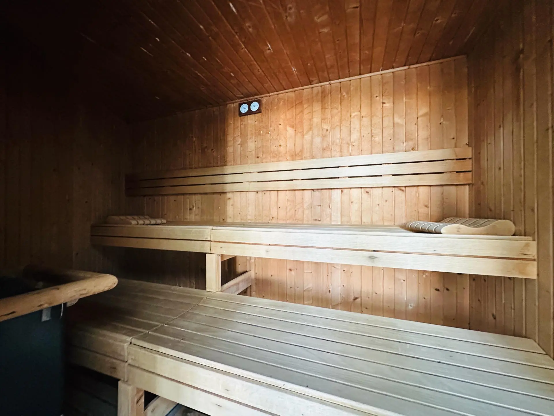 The residential development is characterized as private and featuring extensive greenery. The landscape within the complex is described as well-maintained and lush, evoking the feel of a tropical park. Amenities available to residents include separate swimming pools for adults and children. Additionally, the complex provides a coworking space, a gym, and areas designated for relaxation. A spa facility is also part of the complex, offering Finnish and Turkish saunas, as well as jacuzzis. The text suggests these amenities are suitable for use during the winter months.