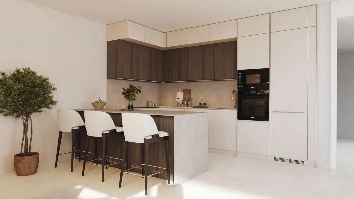 This development features 173 homes, offering options with two and three bedrooms. Within this selection are duplexes and penthouses, some of which include private pools on their terraces. Every residence is notable for its large terraces that provide unobstructed views of the sea. Additionally, the homes are equipped with an aerothermal climate control system, a method that is efficient, environmentally conscious, and beneficial to the planet.