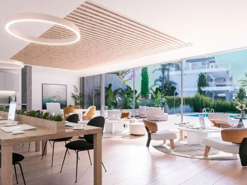 The complex is an innovative and elegant development of 96 apartments, offering living spaces with 2 to 3 bedrooms. Each home features interiors, high-quality finishes, large windows, and terraces all facing west, providing views of the Mediterranean Sea. Ground floor units include private gardens and pools, while penthouses feature solariums with optional pools.