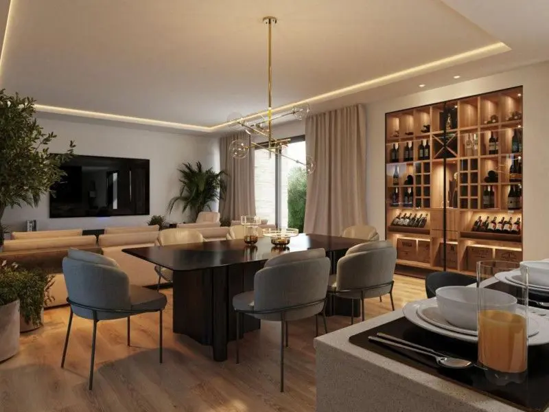Each residence within this development is crafted to offer a specific living experience. The ground-floor apartments and the penthouses include private pools, intended for relaxation. For the three-bedroom units, there are double parking spaces provided in an underground garage, and a wine room is integrated into the design.