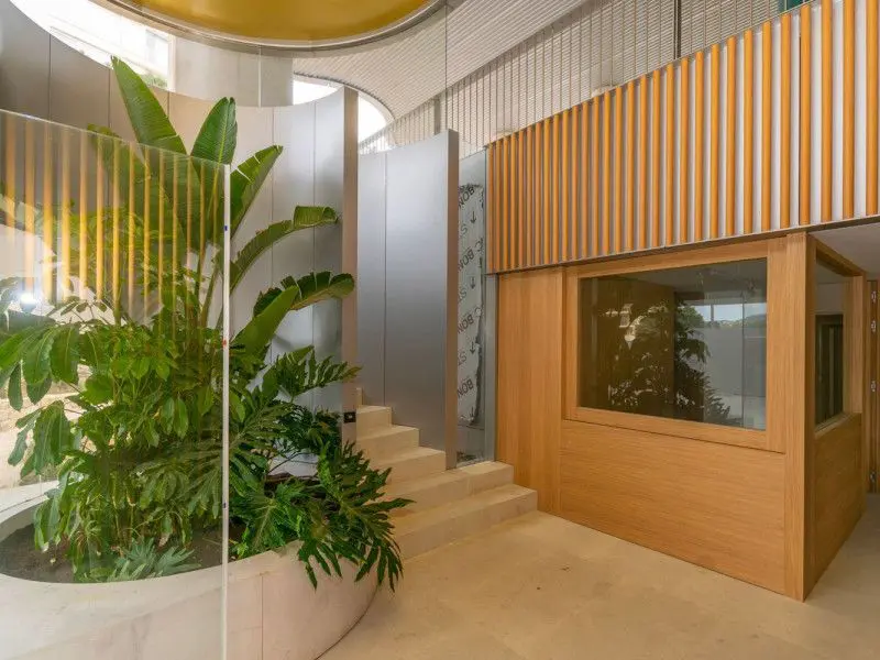 This exclusive building is situated in a coastal location and contains 21 apartments spread across 17 floors. There are either one or two apartments on each floor, offering residents a quiet and private environment. The property includes covered outdoor parking and underground parking with 35 spots. These parking spots are equipped with preinstalled setups for electric vehicle charging. Additionally, there are 27 storage spaces available. Residents can utilize a 25-meter infinity pool, which is monitored by 24-hour video surveillance. The complex also features landscaped gardens.