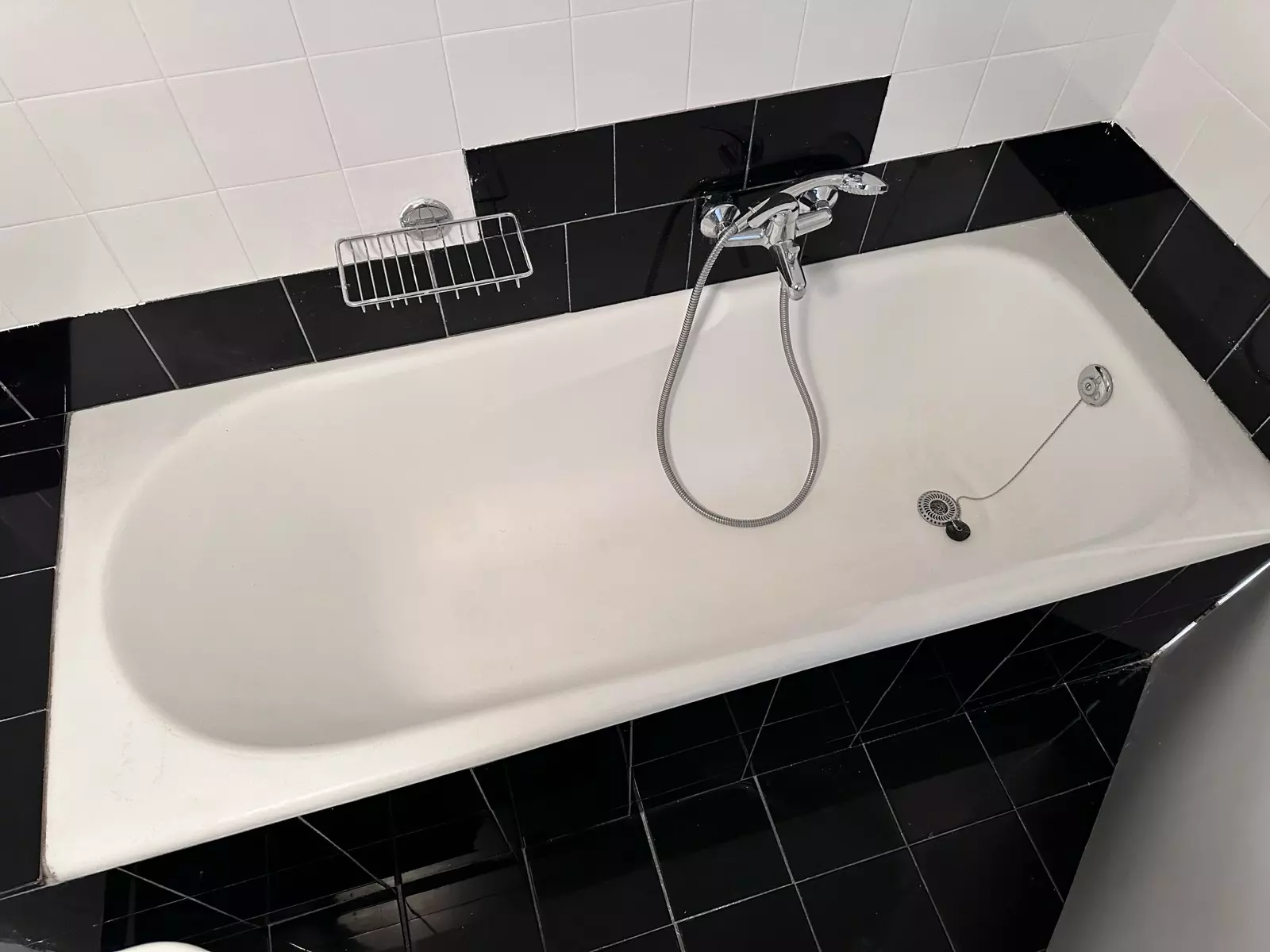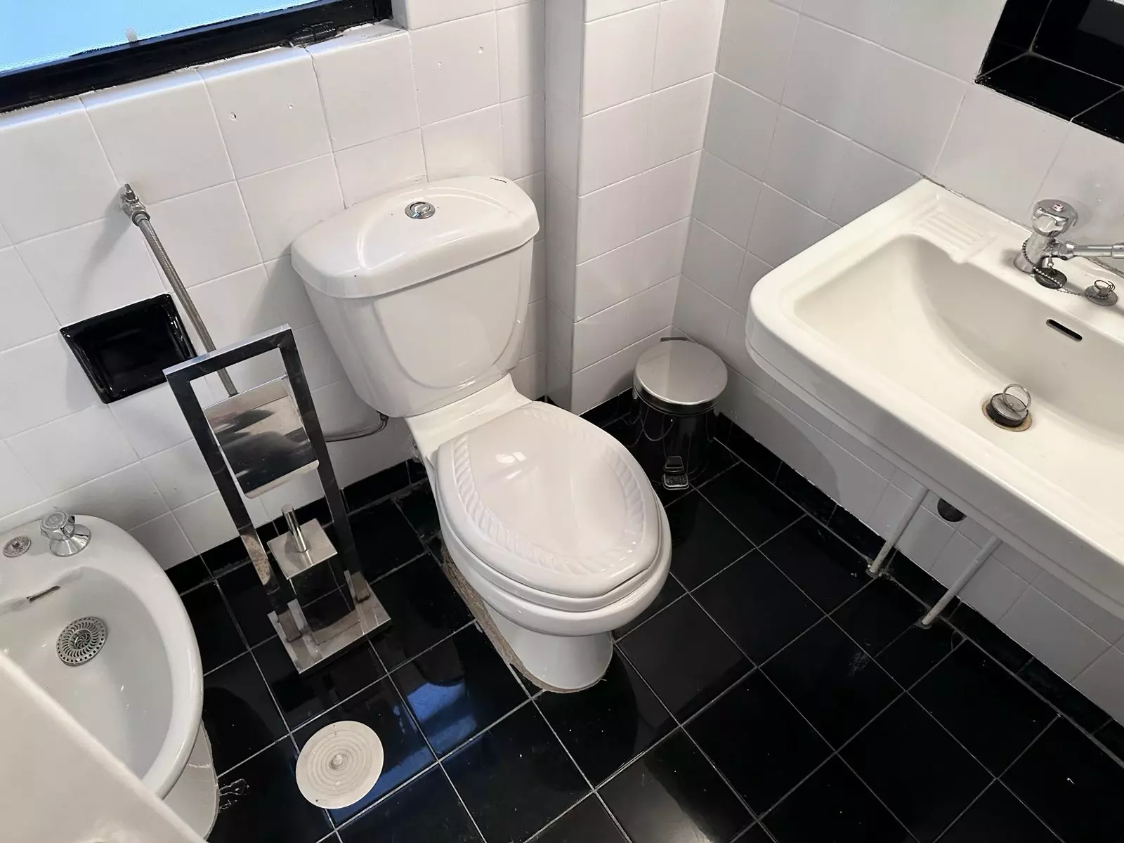 Throughout the apartment, you can still see the quality materials characteristic of its era, contributing to a design aesthetic that has stood the test of time. The presence of refined wooden parquet floors, mosaic details, and updated, double-glazed doors on the external balcony all contribute to the property’s enduring character. For comfort, the apartment is equipped with central natural gas heating, ensuring warmth during the cooler months.
