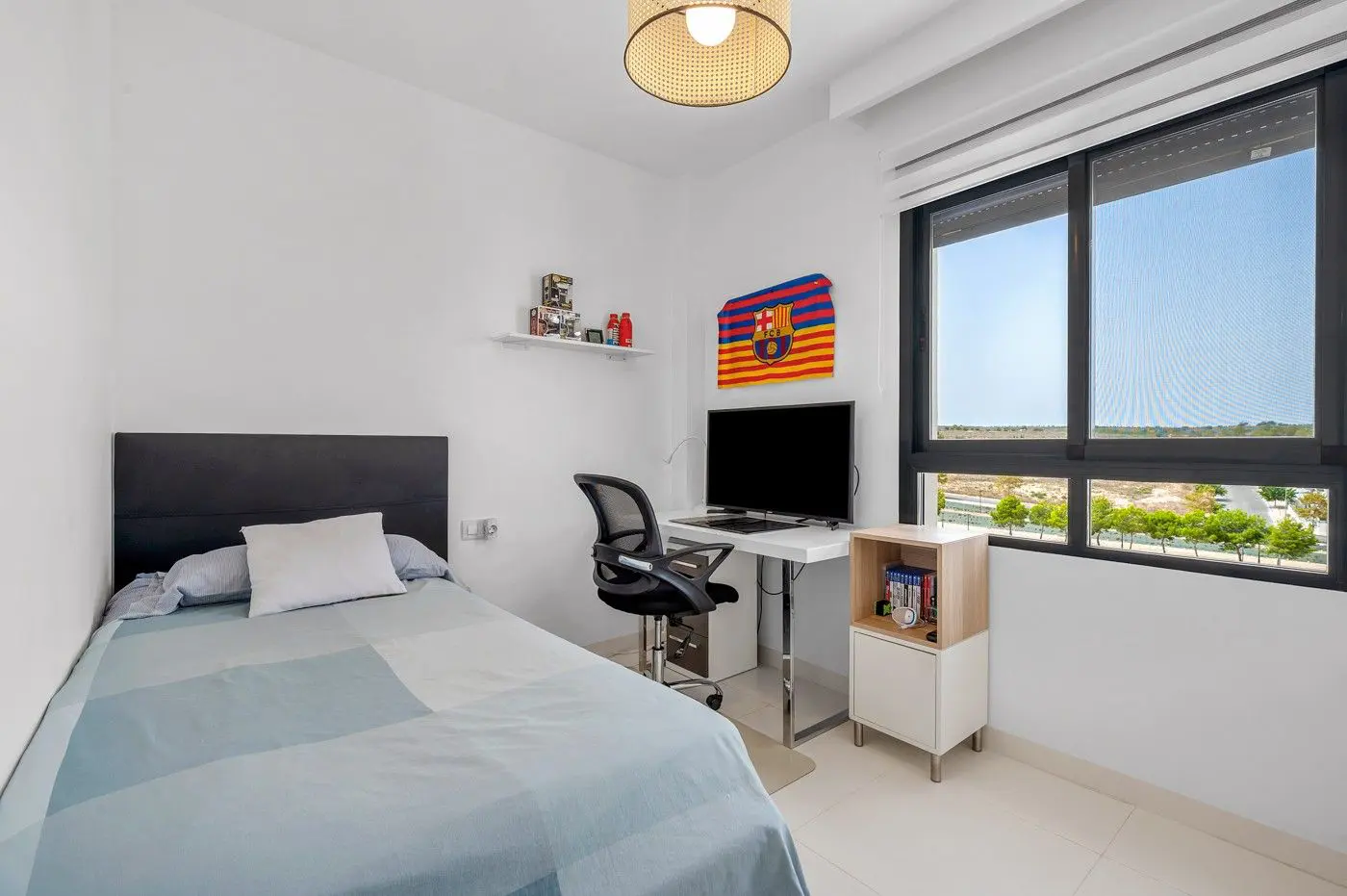 Escape the hustle and bustle and find your oasis of peace in this beautiful apartment in San Miguel de Salinas. The ideal second home for those seeking serenity while still staying close to the coast. This property features 2 bedrooms and 2 bathrooms, a bright and spacious interior, and a sunny southwest-facing balcony. Key features of this apartment: ✅ 2 spacious bedrooms & 2 modern bathrooms ✅ Fully furnished ✅ Sunny southwest-facing balcony with beautiful views ✅ Bright, open-plan living spaces ✅ Large private storage room: perfect for bicycles, beach gear and more ✅ Private underground parking space ✅ Large communal swimming pool for a refreshing dip Perfect location: • Only 5 minutes drive to Las Colinas Golf & Country Club, an internationally acclaimed golf destination • Close to the charming village of San Miguel de Salinas, with artisan bakeries, tapas bars, a Belgian butcher, and all daily amenities. Every Wednesday, you can also enjoy the lively local market in the village. • Just 15 minutes from the sandy beaches of Orihuela Costa, the popular La Zenia Boulevard shopping centre, and the vibrant city of Torrevieja You can enjoy the apartment yourself as a holiday home, rental property, or permanent residence. This apartment offers the perfect combination of peace, comfort and a prime location—all with excellent value for money.