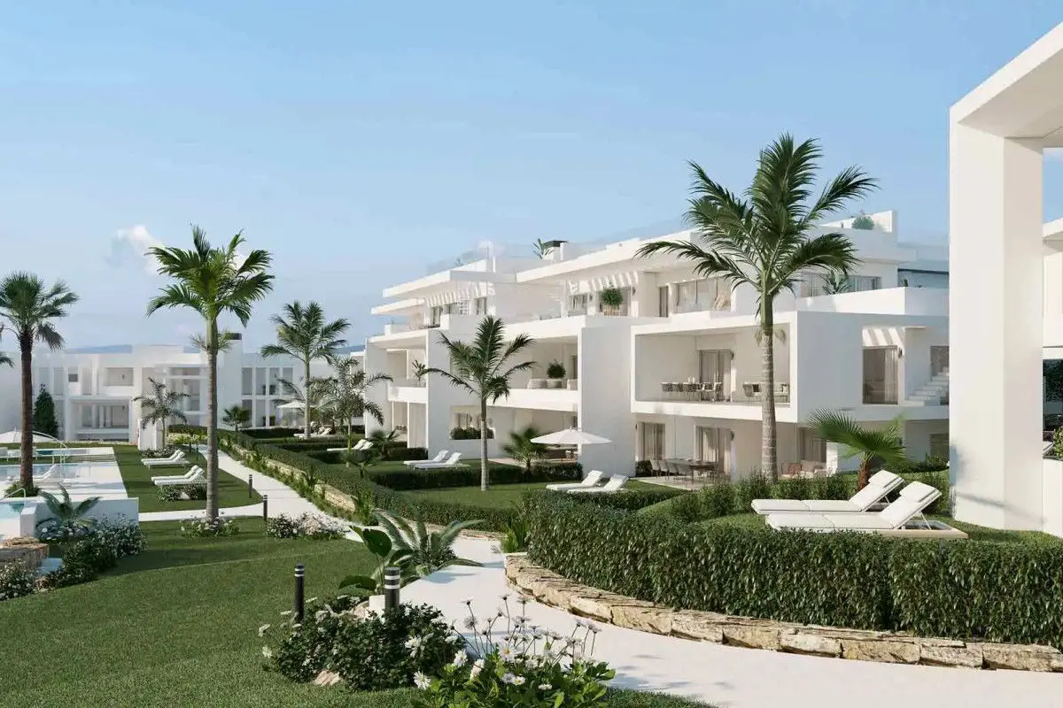 The sunny coast is renowned for its outstanding climate, boasting numerous sunny days each year. This region benefits from natural protection against winter winds thanks to its mountain range, ensuring mild temperatures even in the summer. The area offers excellent communication infrastructure, with nearby airports and a wide array of services ranging from Marbella to Gibraltar. This includes golf courses, restaurants, shopping centers, marinas, hotels, hospitals, and schools. Located on the western part of the sun-drenched coast, you will find the charming “white village” of Casares. This picturesque town stands out for its scenic hiking trails and coves that are perfect for swimming, fishing, or diving. In this region, there is a contemporary Mediterranean-style residential complex surrounded by 40,000 m2 of tropical gardens. This development is known for hosting Europe`s first innovative crystal lagoon, offering a private sandy beach, a promenade by the water, water sports, and various leisure options, including a beach bar, restaurant, gym, jacuzzis, and saunas. The homes in this new phase are strategically designed to maximize natural light with expansive terraces and are situated in an exclusive environment. These residences feature high-quality finishes such as porcelain floors, fully equipped kitchens, optimal insulation systems, and centralized air conditioning. For added convenience, they include an elevator from the underground parking and a private storage room. Each property offers a comfortable living space, with sizes ranging from 111 m2 to 114 m2, and every unit comes with two bedrooms. The price range for these exceptional homes is between 550,000 € and 580,000 €.