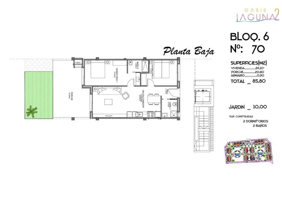 VARIOUS TYPES OF HOUSING TO CHOOSE FROM: We offer various types of housing to choose from in different orientations. 2 bedrooms + 2 bathrooms and 3 bedrooms + 2 bathrooms types. All 3-bedroom homes will be corner units, making them even more exclusive for clients. Among these, we offer homes with South, East, and West orientations. All with terraces/porches facing the green area and Laguna de La Mata.