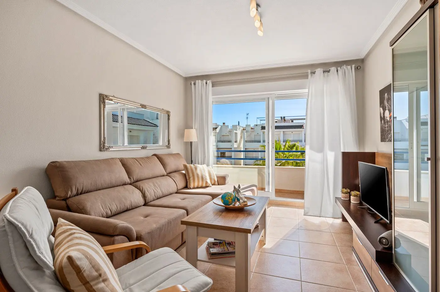 This inviting penthouse apartment from 2005 is located on the 2nd floor in a well-maintained, gated complex with a total of 66 properties. You get a home in very good condition with a well-designed layout, plenty of outdoor space, and a location that ranks among the best in the area.The apartment offers two spacious bedrooms with built-in wardrobes and two bathrooms, one of which is ensuite to the master bedroom. The bathroom in the master bedroom was fully renovated in 2025, giving the property a modern and updated feel.Upon entering the apartment, you are welcomed by an entrance hall with the kitchen located to the right. The kitchen provides ample storage space. From here, there is access to a practical patio area with, among other things, a washing machine. To the left of the entrance, you will find the bright and spacious living room with plenty of space for both a dining area and a lounge.From both the living room and the master bedroom, there is access to a cosy east-facing terrace overlooking the beautiful communal pool area. Here you can enjoy the morning sun in peaceful surroundings, and a side awning provides additional privacy.From the terrace, a staircase leads up to a large and private rooftop terrace, which truly completes the property. Here, the sun can be enjoyed all day, with the option to relax in the shade under the pergola. From the rooftop terrace, there are lovely views of the town and, not least, the characteristic pink salt lake of Torrevieja. There is also a practical storage room on the rooftop.The apartment includes a private parking space in the underground garage.The property is a non-smoking apartment and is generally well maintained. There is air conditioning in both bedrooms as well as in the living room. The air conditioning units in the living room and guest bedroom are approximately 3.5 years old.The communal areas of the complex were renovated, and the entire development was repainted in 2023, giving it a neat and well-kept appearance.The location is excellent. Supermarkets such as Aldi and Lidl are just approximately 260 metres from the property, and there is a bus stop at a similar distance. The sea can be reached within a few minutes’ walk – only 300 metres away. In addition, there is a short distance to both Torrevieja town centre and Punta Prima, offering easy access to restaurants, cafés, and local amenities. Alicante Airport is approximately 46 km away, and there is easy access to the main road N332.All in all, this is a wonderful penthouse offering comfort, views, and a highly attractive location – ideal as both a holiday home and a permanent residence.