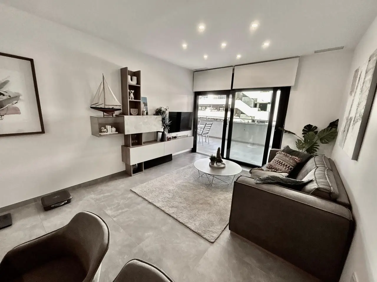 This brand new, modern apartment is located in the highly sought-after Flamenca Village and features a south-west facing balcony overlooking the beautifully maintained pool area. The exclusive urbanisation offers outstanding communal facilities, including four swimming pools (one of them heated), a fully equipped gym, landscaped promenade areas, and a pool bar, creating a resort-style living environment. The apartment is fully equipped and ready to move into, sold furnished and including appliances and air conditioning throughout.