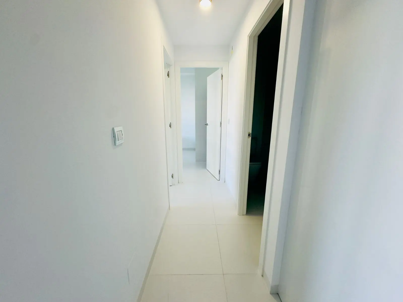White laminated wardrobes with overhead storage in bedrooms.