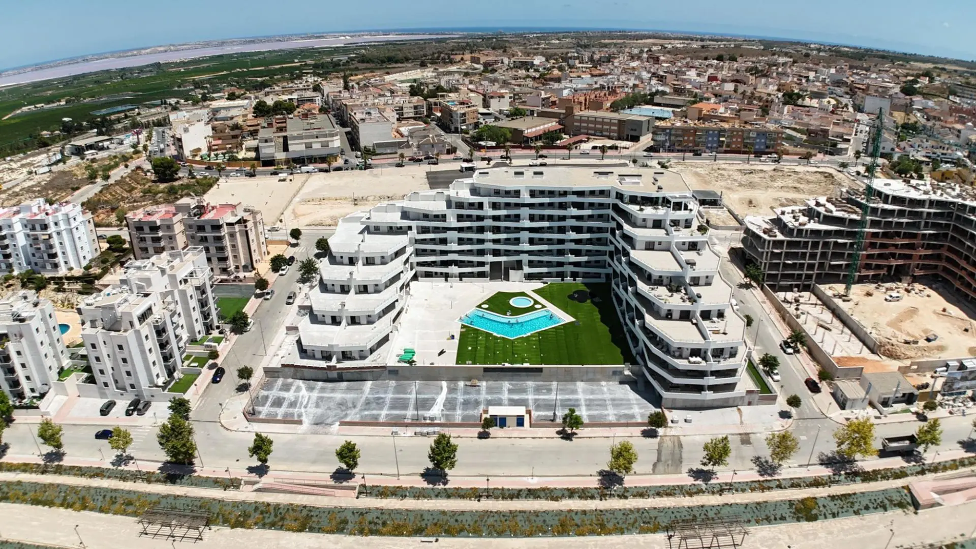 Fully enclosed residential area with communal swimming pools for adults and children, green areas, children’s playground, and an adult area with a bio-healthy fitness circuit. Located on the Costa Blanca in San Miguel de Salinas, close to golf courses, beaches, and shopping centers.