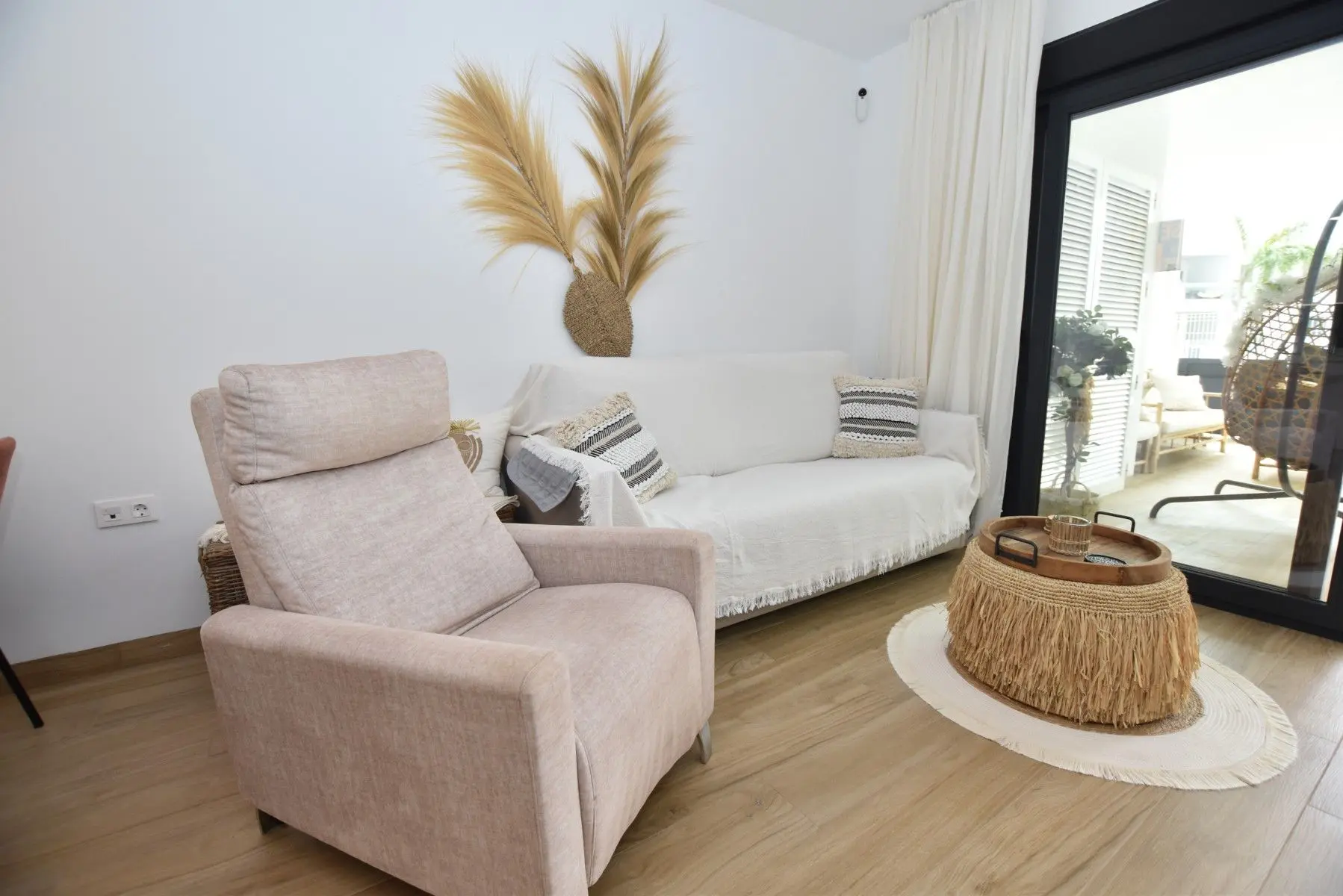 Modern apartment in Residencial Nalia with 2 bedrooms, 2 bathrooms (1 en-suite), open-plan living, and 57 m2 of private terraces. South-facing terrace with pool views + north-facing terrace with Pink Lagoon views. Communal pools, gym, optional underground parking/storage. Close to amenities, golf, beaches, and Alicante Airport.