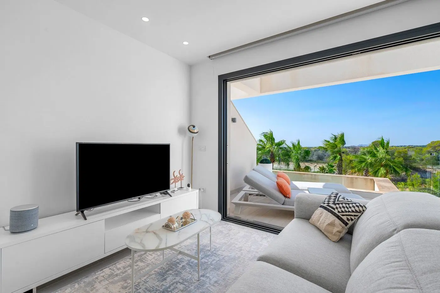 Discover this fantastic apartment located on the edge of the renowned, award-winning Las Colinas Golf Resort. Move in immediately: fully furnished and equipped with high-quality Bosch appliances, kitchenware, stylish décor, and even bed linen. The home features a sleek, modern design with an open-plan kitchen that can be closed off to disappear seamlessly, a unique feature you have to see in person. The bright living room is bathed in natural light thanks to floor-to-ceiling sliding doors, creating a perfect connection between indoor and outdoor living. Step onto the 20 m2 south-facing terrace and enjoy endless sunshine and breathtaking views over the surrounding natural park. With nothing ever to be built in front, these panoramic views are yours to keep forever. The apartment offers two spacious double bedrooms, including a master suite with ensuite bathroom and built-in wardrobes. Imagine waking up to sweeping views of the resort right from your bed. All windows are fitted with electric blinds and curtains, so you can control sunlight while still enjoying the scenery. Both bathrooms are in pristine condition, fitted with underfloor heating for extra comfort during the cooler Spanish winter days, and fully equipped with modern fixtures. Additional highlights include: A large private underground parking space Two generous storage units Direct access to your front door via elevator Community pool Access to the WOW Beach by Las Colinas beach club in Dehesa Campoamor Life at Las Colinas Golf Resort means exclusive access to first-class amenities: a luxurious clubhouse with panoramic views, a wellness centre, tennis courts, and three restaurants offering both international and local cuisine. Whether you’re looking for a permanent residence, a smart investment, or a private retreat for sunny getaways, this apartment offers the perfect blend of luxury, comfort, and exclusivity in one of Spain’s most sought-after resorts.