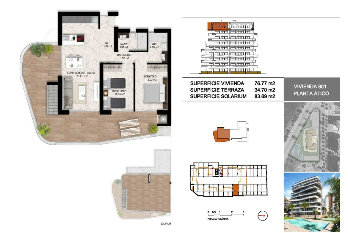 Discover a new build residential project located directly in front of the Segura River, just a short distance from the marina and the beach of Guardamar del Segura. This modern-style building features a total of 31 apartments, offering a range of options including two-bedroom units and penthouses with either two or three bedrooms. All apartments come equipped with two bathrooms, an open-plan kitchen, and a living room. Additional amenities include fitted wardrobes, spacious terraces starting from 20m², underground parking, and a closed storage room.