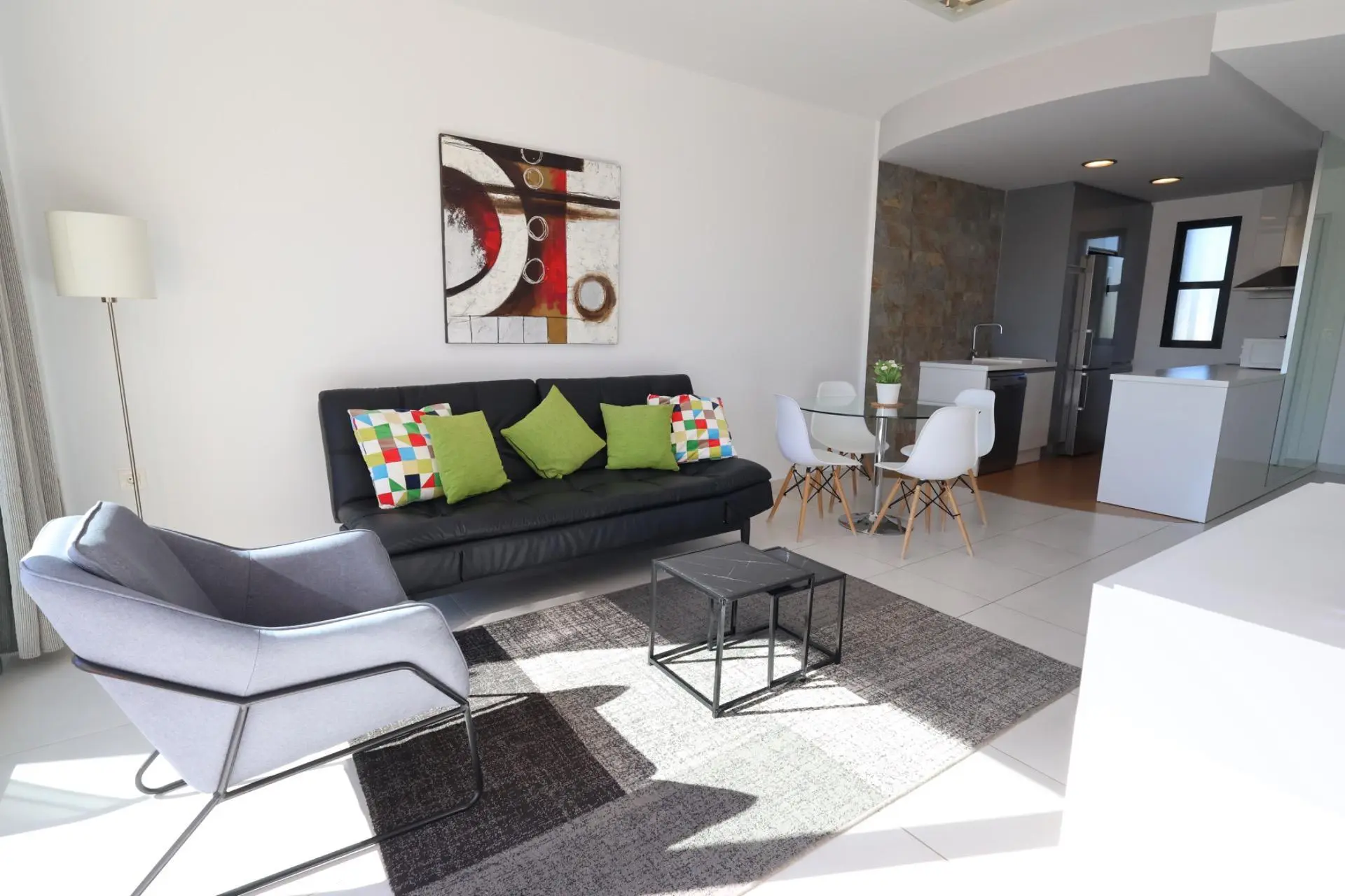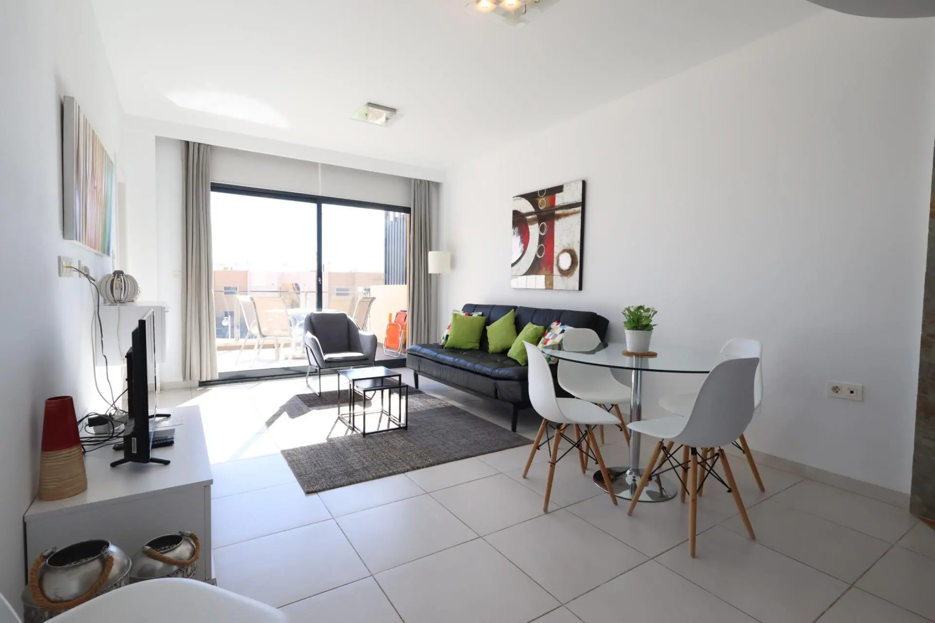 La Zenia, Residencial Sabrina.. 77 m2 south-facing apartment featuring 2 bedrooms (1 en suite), 2 bathrooms, a spacious living-dining room, an open-plan kitchen, and a terrace. The property is sold furnished and with air conditioning. It offers extensive communal areas with a community pool, as well as a storage room and parking. The apartment has a tourist licence and currently generates excellent returns.
