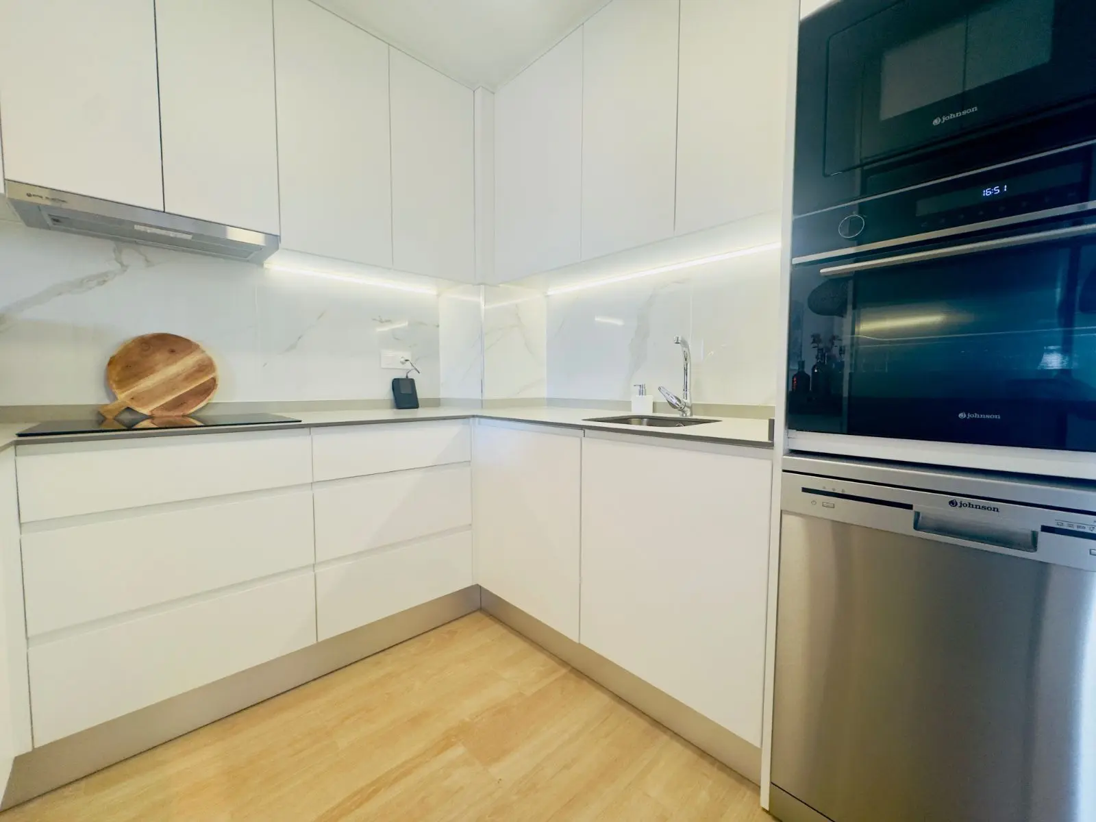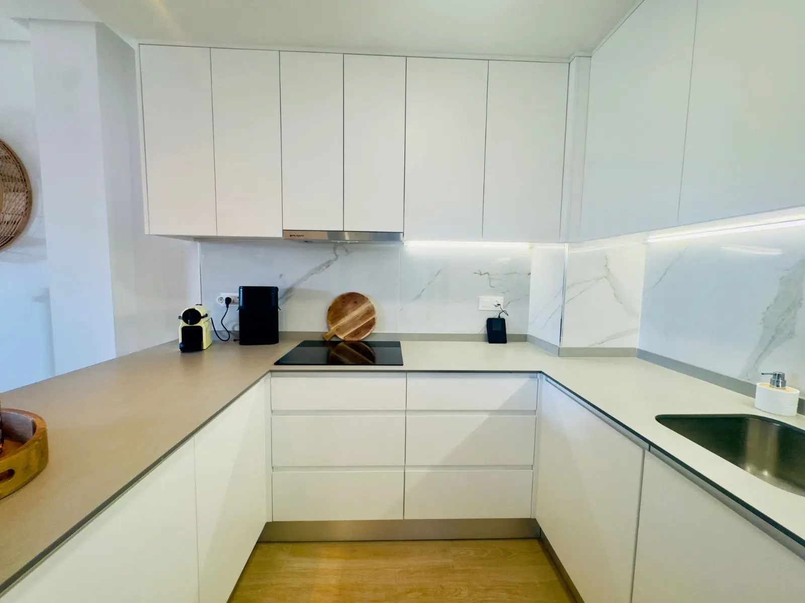 With a built area of 78 m2, the apartment features two spacious bedrooms and two full bathrooms, one of which is en suite in the master bedroom. All spaces are carefully furnished and decorated in a contemporary, cozy style, ready to move in from day one.