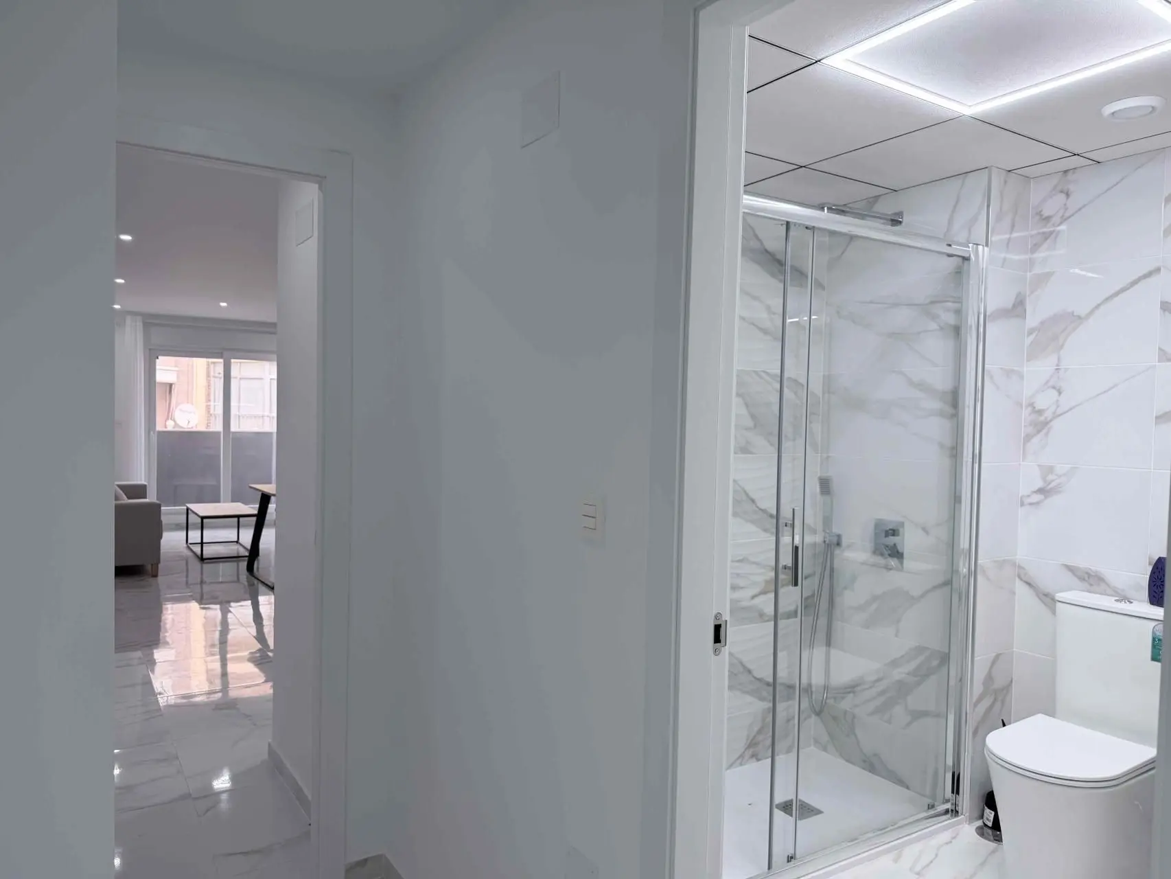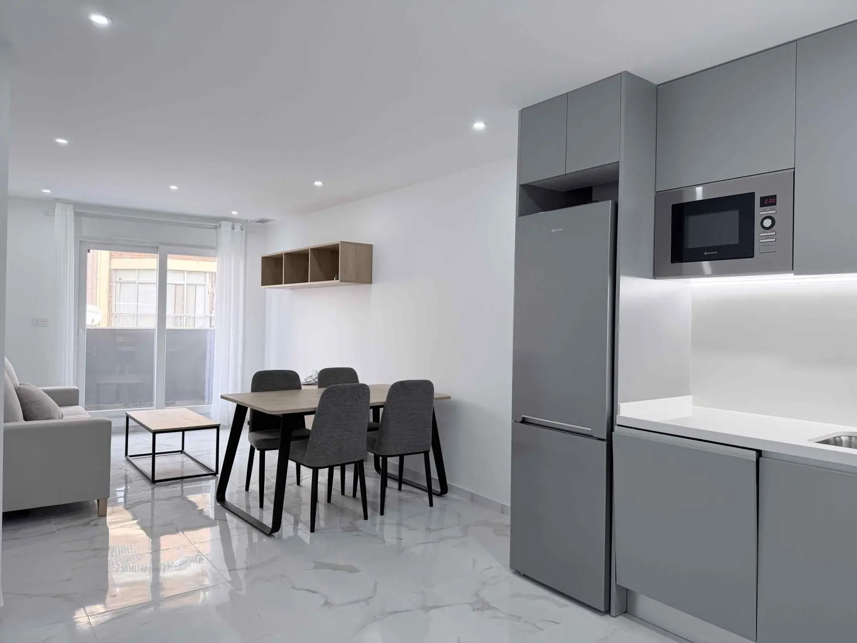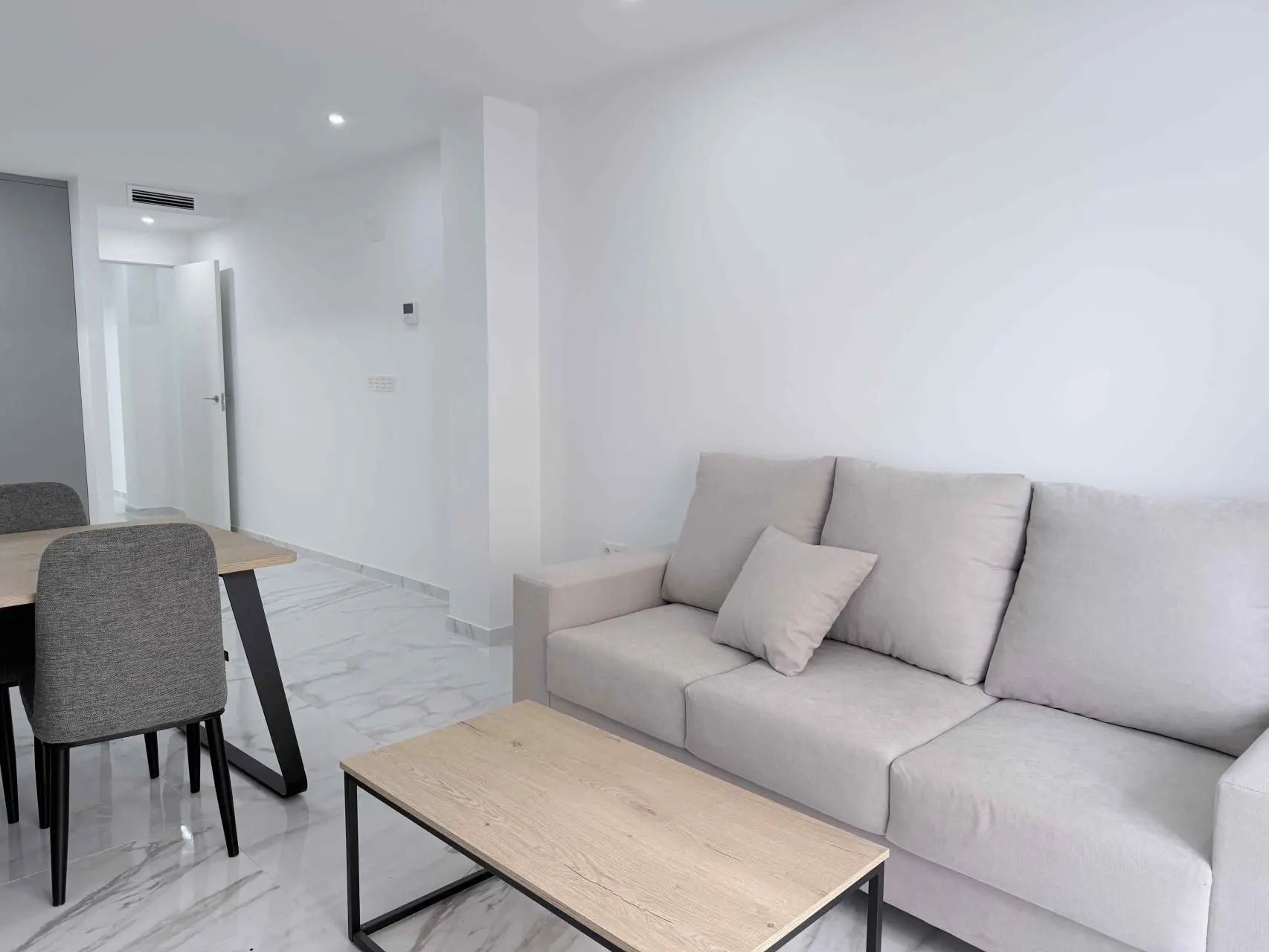 Located in the heart of Torrevieja, this new-build apartment offers 78 m2 of living space, fully finished and ready to move into. The property features two bedrooms, a bathroom, and an open-plan living and dining area with an integrated kitchen, fully furnished and equipped. Situated on the third floor of a building with an elevator, it includes ducted air conditioning and access to a rooftop solarium where you can enjoy sea views, sunbathe, host barbecues, or use the sauna. Just 800 meters from the beach and surrounded by essential services, this apartment combines convenience and location. Alicante Airport is only a 35-minute drive away, making this property suitable for both permanent residence and as a holiday home on the Costa Blanca.