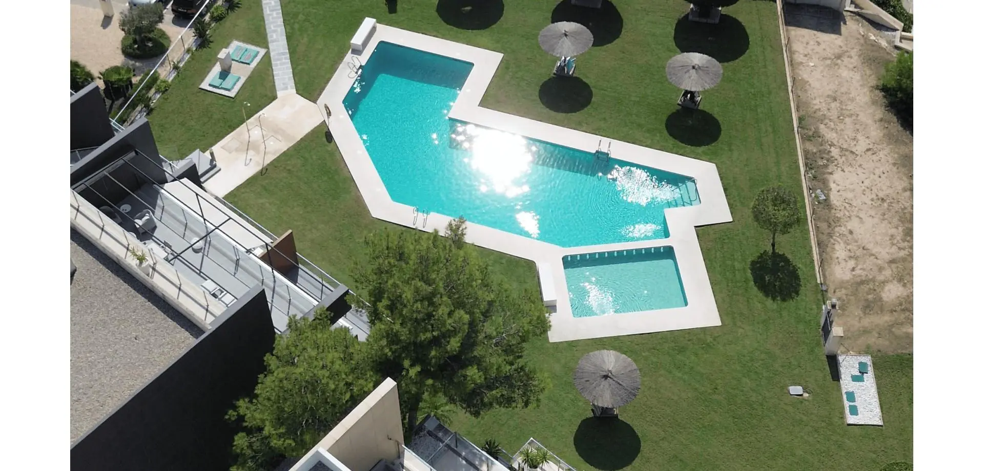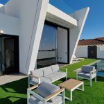 Step inside and you’re greeted by a bright, modern interior with an open-plan kitchen, spacious living room, and a separate laundry room. The home features two generously sized terraces — a 36 m2 rear terrace overlooking the communal pool and gardens, and a 29 m2 front terrace large enough to park your car within the private plot. This gives you the option to enjoy sun or shade throughout the day.