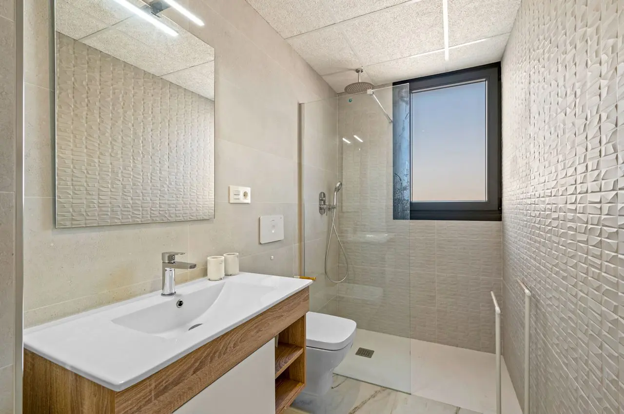 This modern luxury second floor corner apartment with 2 bedrooms and large private terrace is situated in the very sought after area of Villamartin, Alicante (Orihuela Costa). The property will be sold fully furnished and consists of a spacious lounge/dining room area, a modern open plan fully equipped kitchen, two bedrooms with fitted wardrobes, two bathrooms (one is en-suite), patio doors from the lounge also lead out onto a private terrace to enjoy the Spanish sun all day. Parking space and storage room in the underground garage is included in the price as well. All residents of this development have use of the indoor gym and the Spa & Wellness area, a very beautiful landscaped communal garden with swimming pool and jacuzzi, children’s playground. Set in a great location with stunning views, you are only a few minutes walk away from the famous Villamartin Plaza with local restaurants, bars and shops to cater for all tastes and needs. The fantastic sandy beach of La Zenia is only a 10 minute drive away.