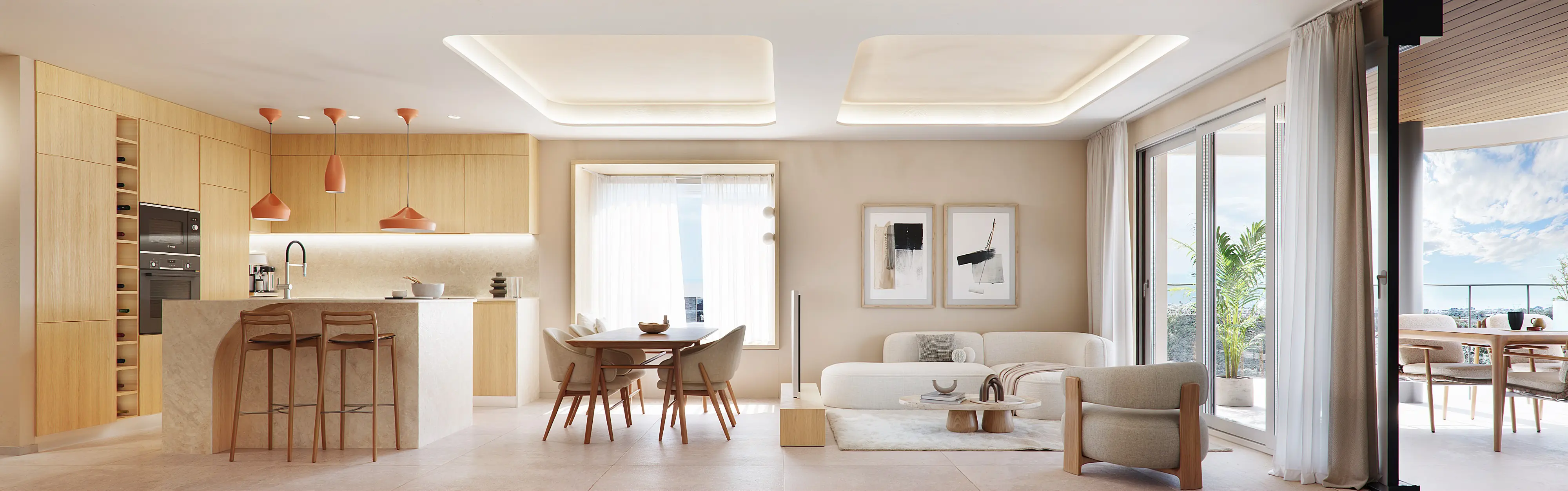 These Apartments have been designed to offer maximum comfort, with modern and functional spaces. They have a spacious living-dining room, a fully equipped open-concept kitchen and exclusive design.