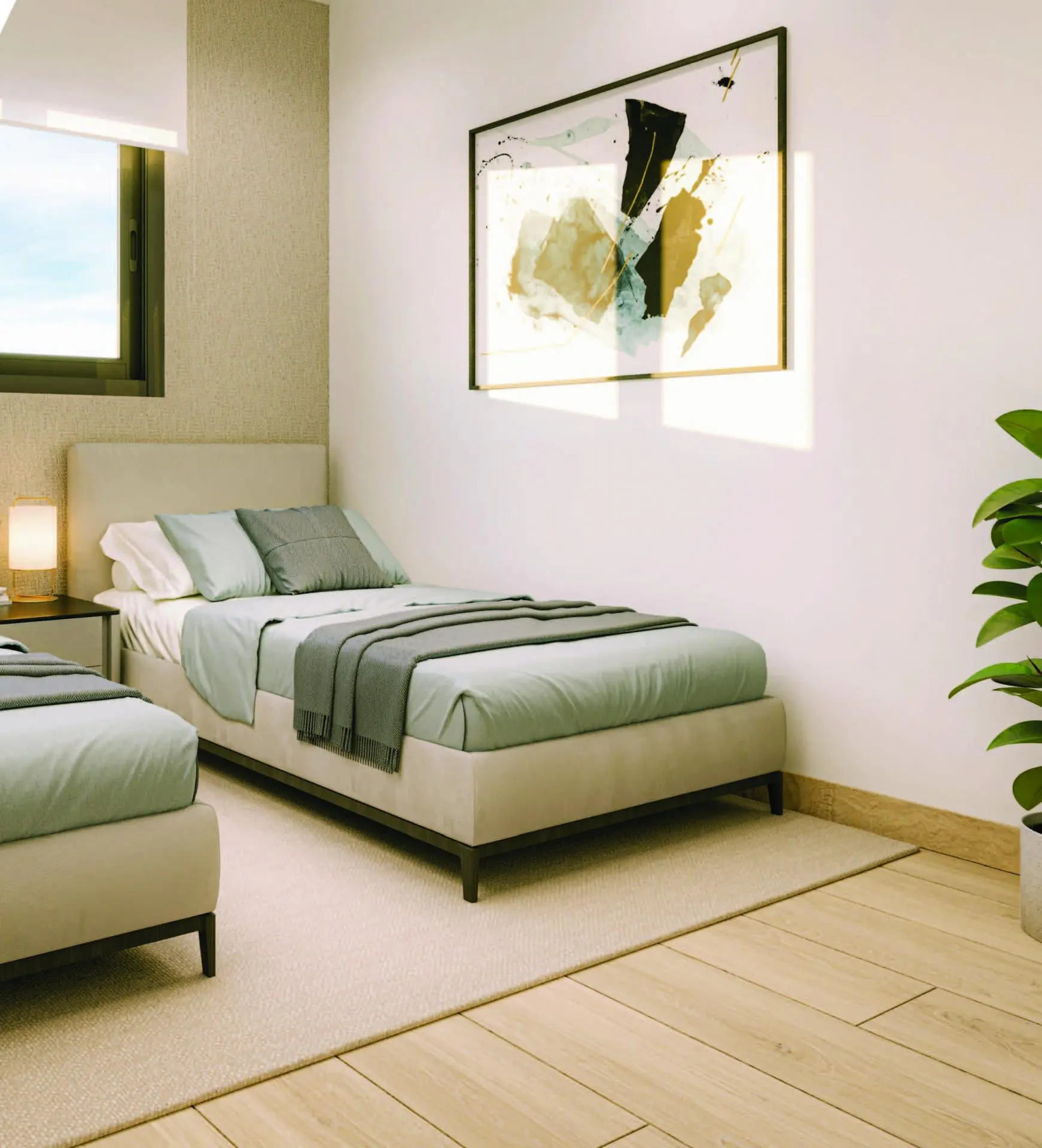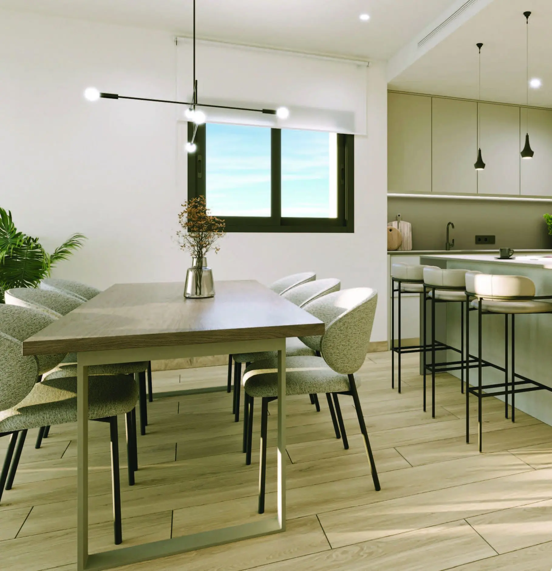 The exteriors of these residences are intended to maximize enjoyment of the Mediterranean climate. The properties feature large terraces, perfect for relaxing outdoors or enjoying a meal with sea views. The ground-floor units have the added advantage of private gardens, ideal for those wanting their own green space. Also, the penthouses come with solariums, an exclusive spot for sunbathing in complete privacy. Being just 4 km from the sea ensures that outdoor activities are an integral part of the lifestyle here.