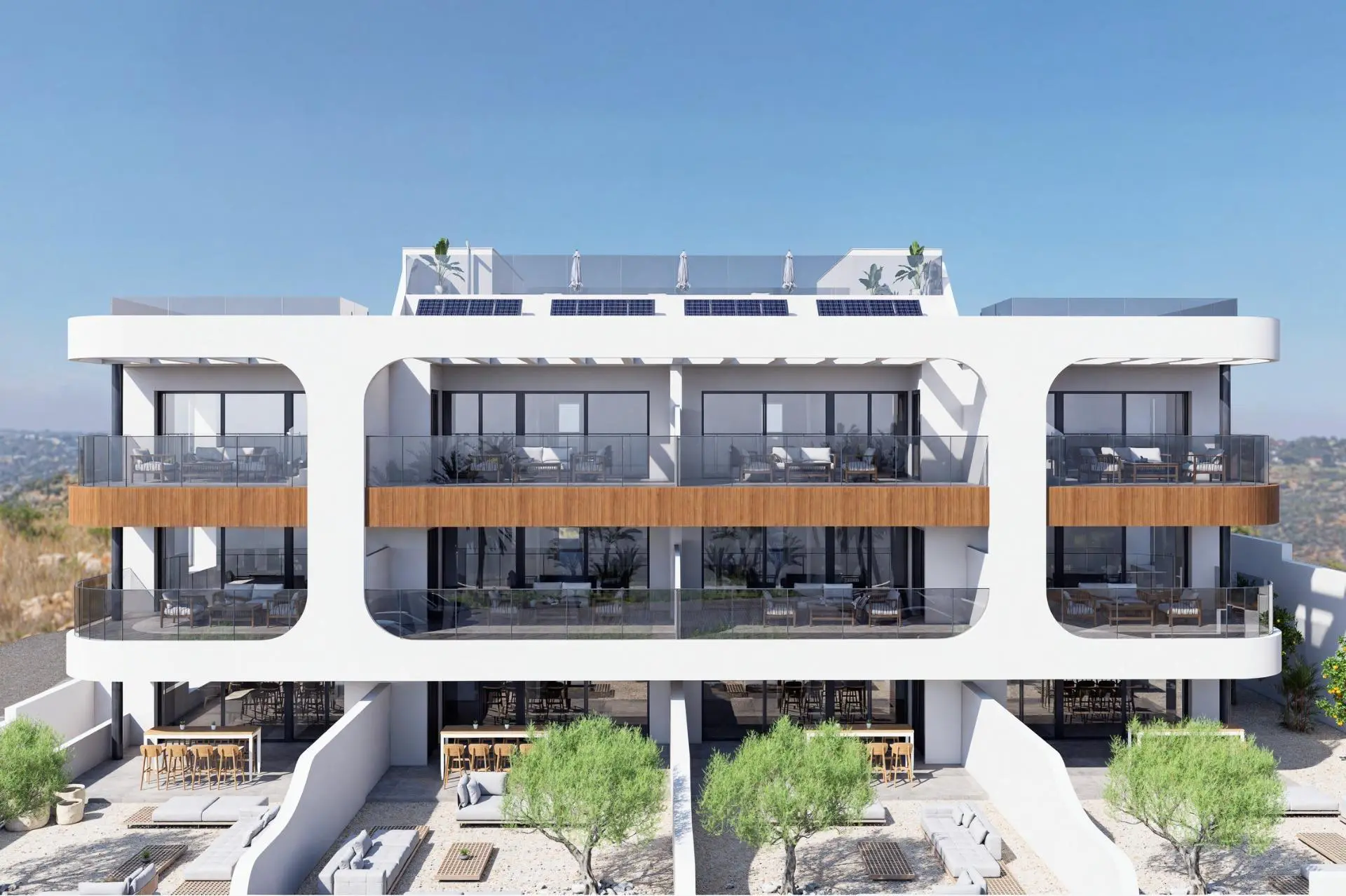 Located at the entrance of Benijófar, in one of the fastest developing areas of the Costa Blanca South, these flats combine contemporary architecture, high quality materials and a strategic location.