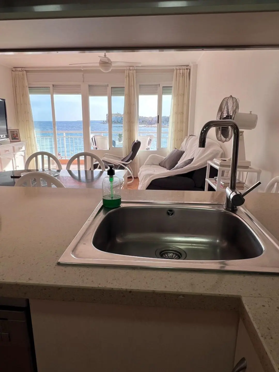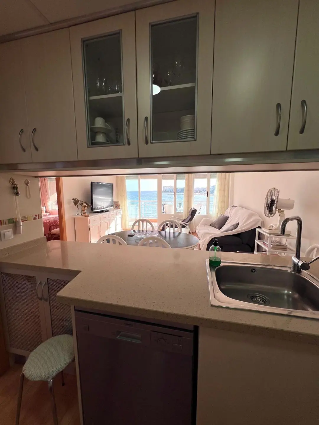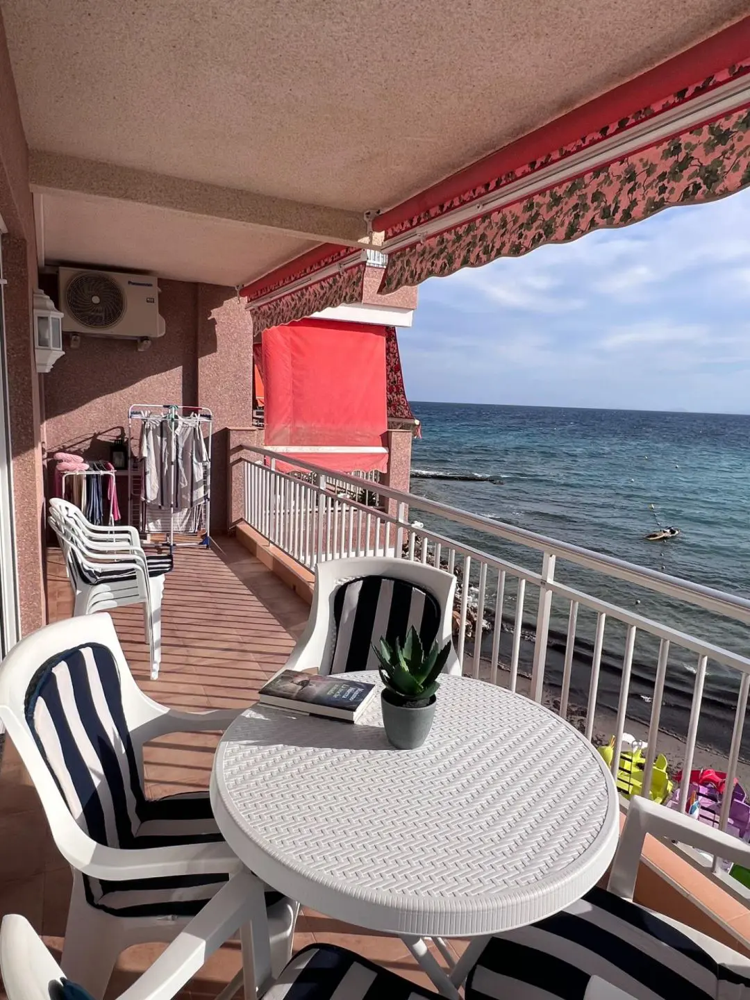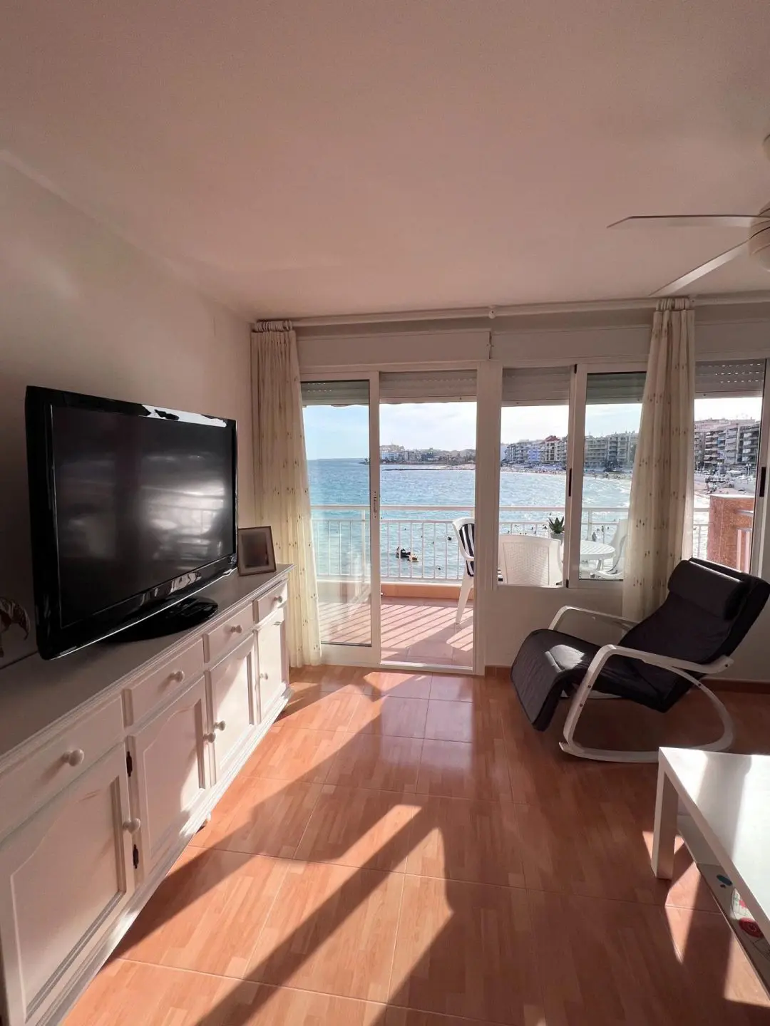 Seafront apartment with direct sea and beach views This apartment is a true Mediterranean gem for those who dream of waking up to the sound of the waves and enjoying the sea right from their home. A spacious terrace offers stunning views, while inside, the fully renovated interior creates a bright and welcoming space, ready to move into. Features: Total area: 86 m2 3 bedrooms (master with en-suite bathroom) 2 bathrooms Separate fully equipped kitchen Living room and bedroom with full wall windows overlooking the sea Utility room combining storage and laundry Large terrace with retractable awning Electric shutters 2nd floor Building details: Built in 1981, the apartment has been completely renovated Showers available at the entrance from the beach for residents Location: First line, with the beach just outside your door. All amenities within walking distance: supermarkets, restaurants, pharmacy, promenade, parks. This is more than an apartment — it’s a lifestyle, where every day begins with the sun and the sea. Perfect for permanent living, family holidays, or as an investment with excellent rental potential. Contact us today for more information or to arrange a viewing. We speak your language and will help you make your dream of living by the sea come true!