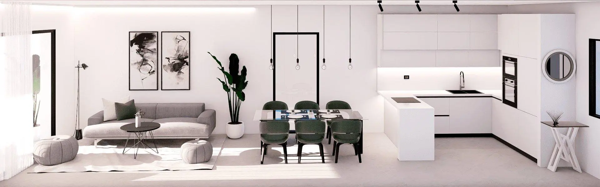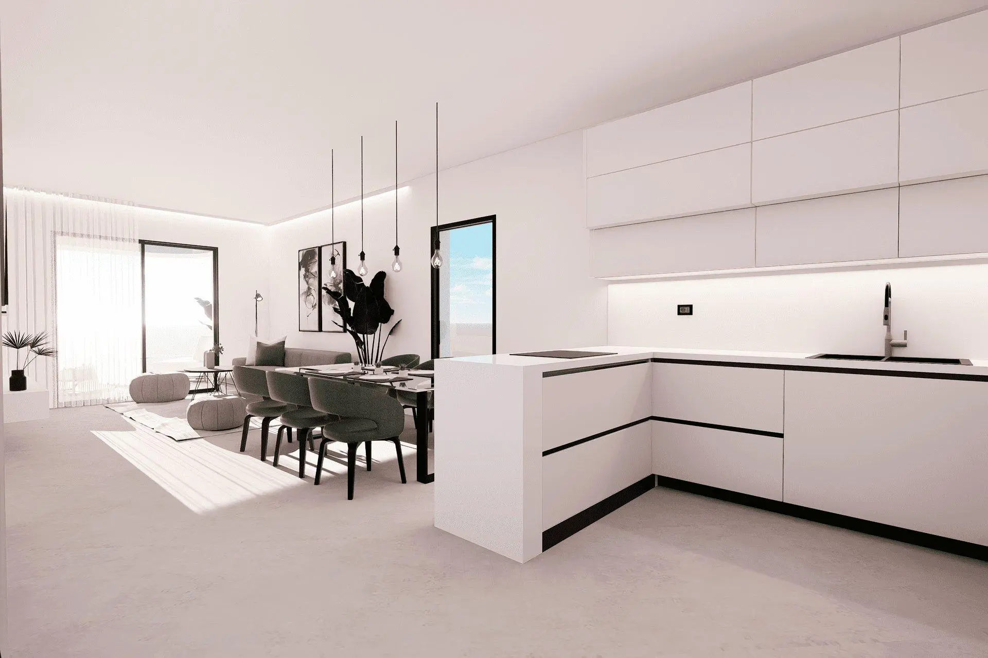 The exterior design of this complex in Finestrat aims to provide an exceptional outdoor experience. The homes feature terraces, and some include private gardens, ideal for enjoying the Mediterranean climate. Residents can relax in the solarium while enjoying the private surroundings. With the sea just 5 km away, the panoramic views and sea breeze create an unmatched atmosphere of peace and well-being.