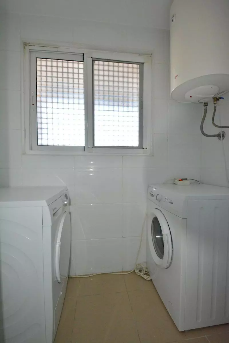 This apartment has a constructed area of 91 square meters and is positioned on the first floor of a well-maintained building featuring an elevator. It incorporates three bedrooms, all designed with built-in wardrobes for efficient storage. Alongside the bedrooms, there are two bathrooms, with one offering a bathtub and the other equipped with a shower cabin. Both bathrooms benefit from windows that allow for natural ventilation.