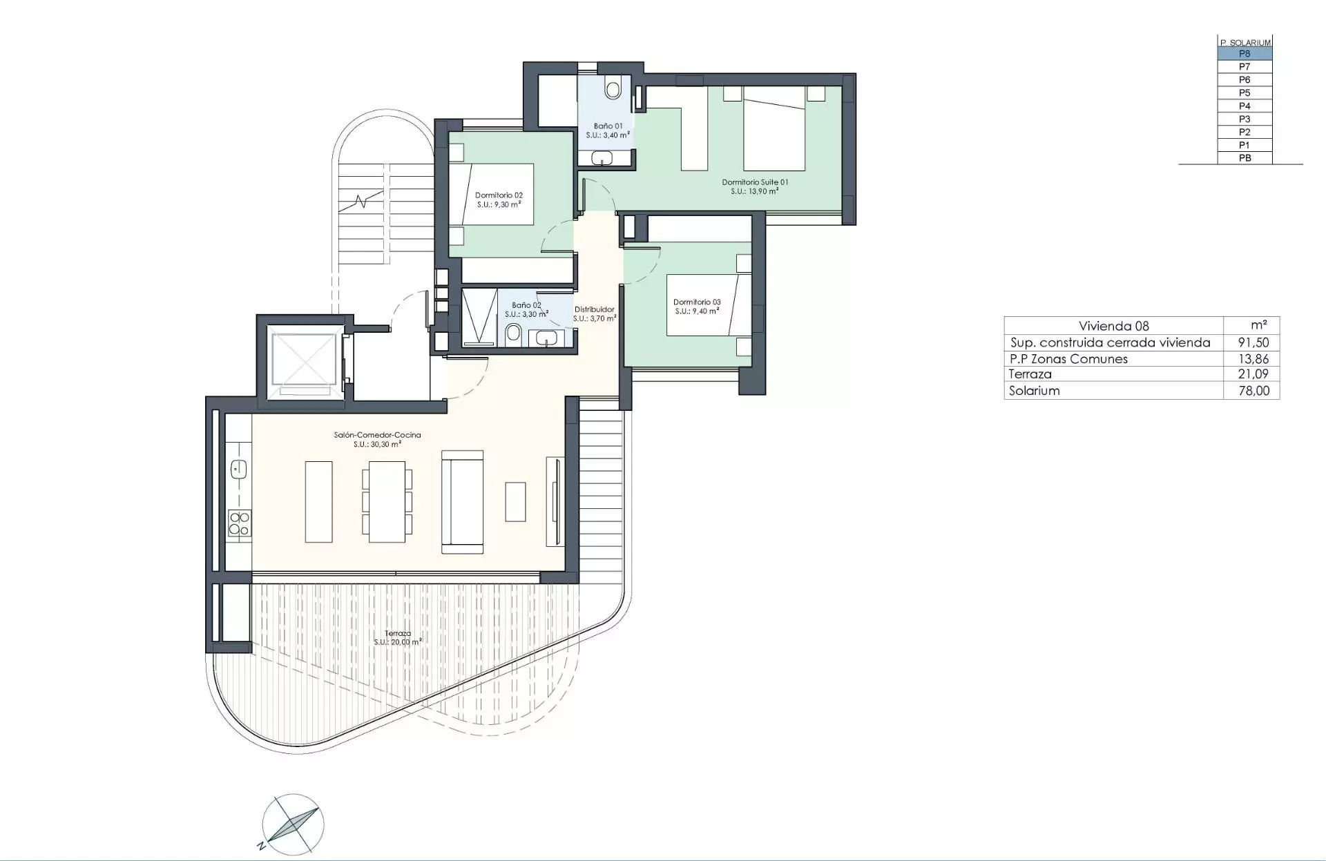 This new residential development in Guardamar del Segura, Alicante, presents an opportunity to reside in a location offering unobstructed views of the Segura River and the Vega Baja. The building features only 9 homes, one per floor, which ensures both privacy and a tranquil living environment.