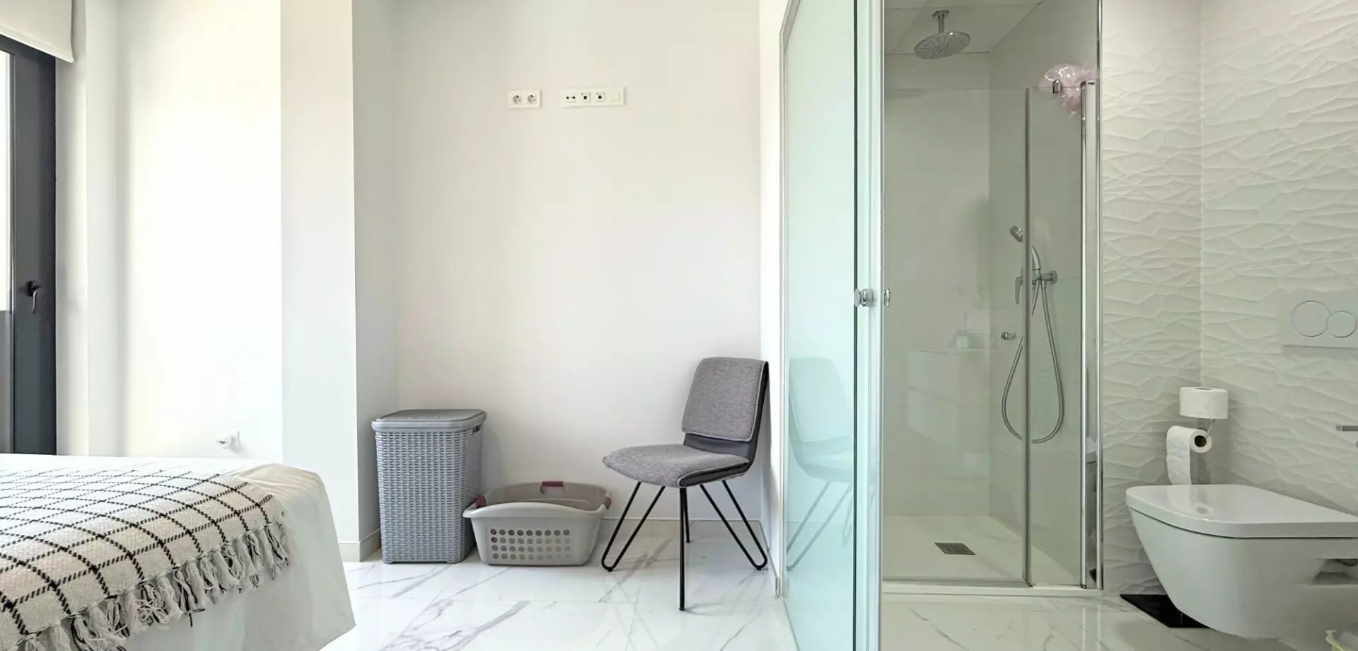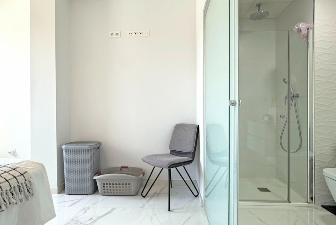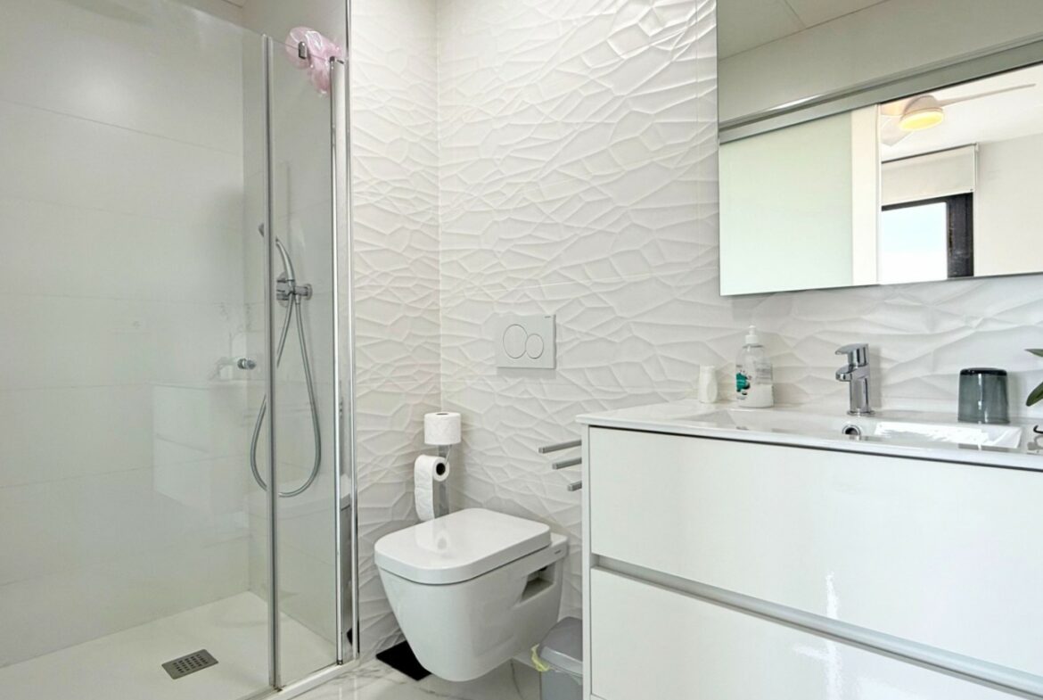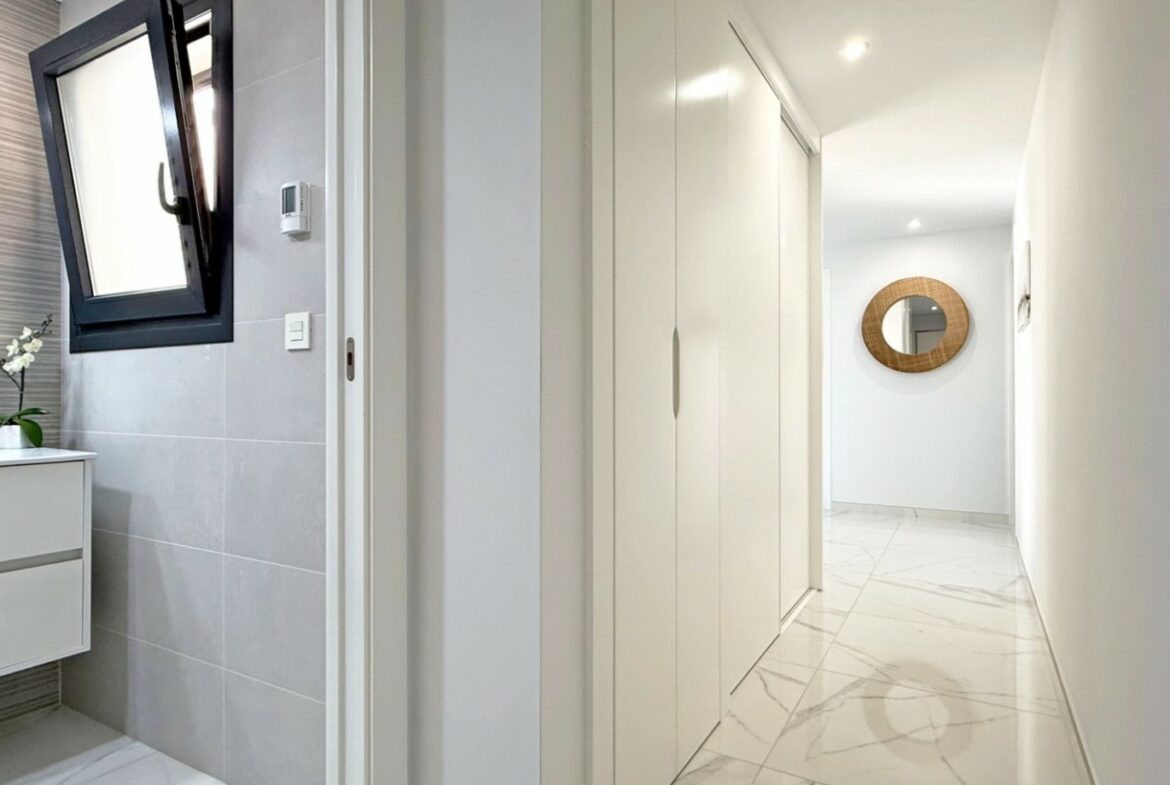 Built in 2021, this third-floor unit features 84 m² of efficiently organized living space. The apartment includes a sunlit 19 m² terrace that offers panoramic views of the communal pool and gardens, creating an open and airy environment.