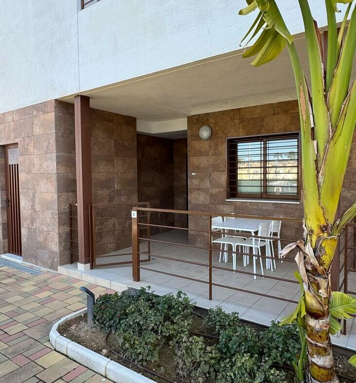 This property is part of a residential complex known for its organized layout and maintenance. Residents can enjoy access to two communal swimming pools, offering leisure and relaxation options. The surrounding gardens are well-kept, adding to the overall aesthetic of the complex without overwhelming the space.