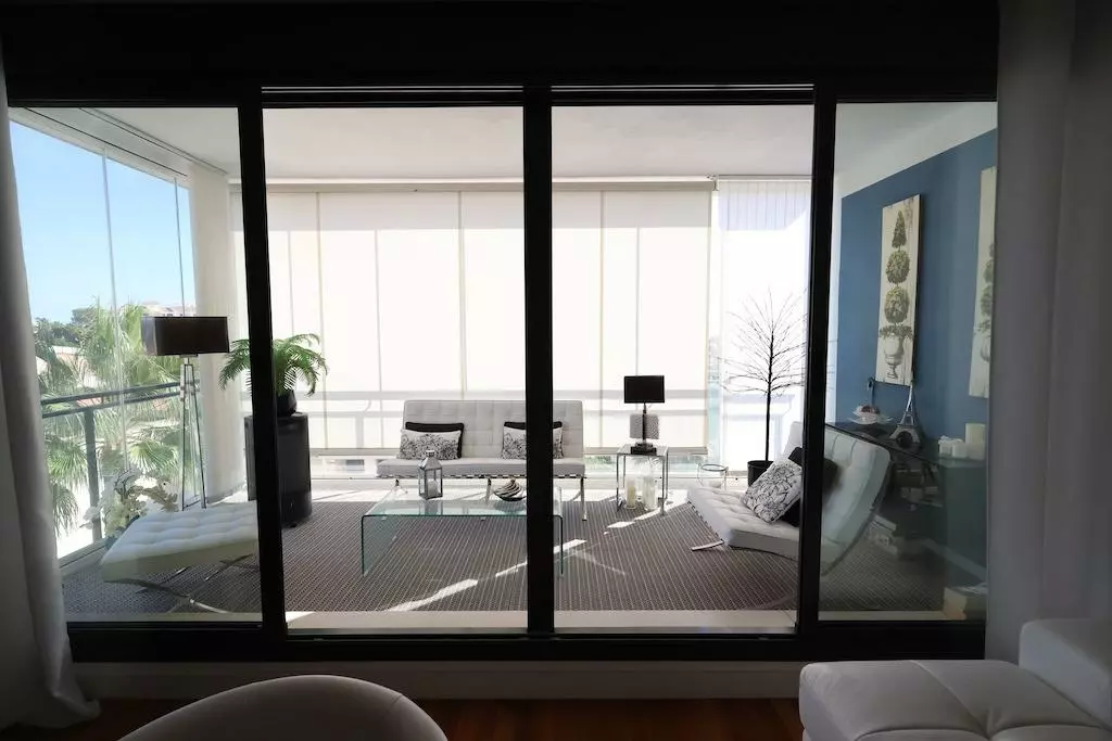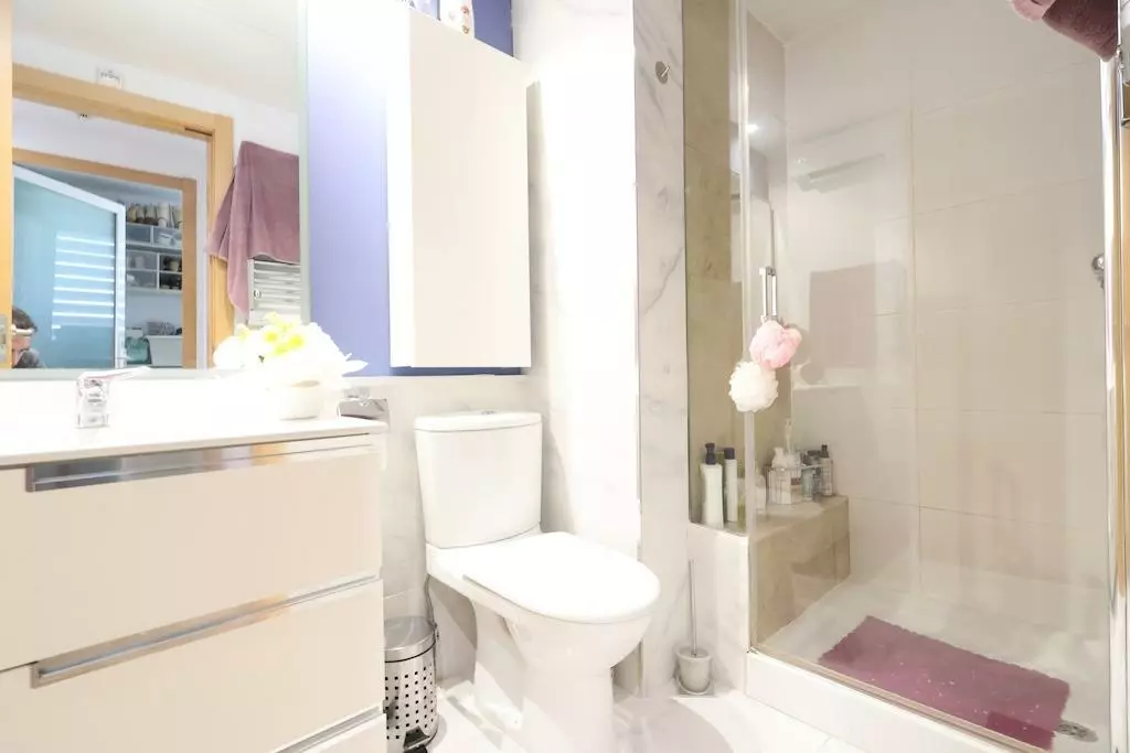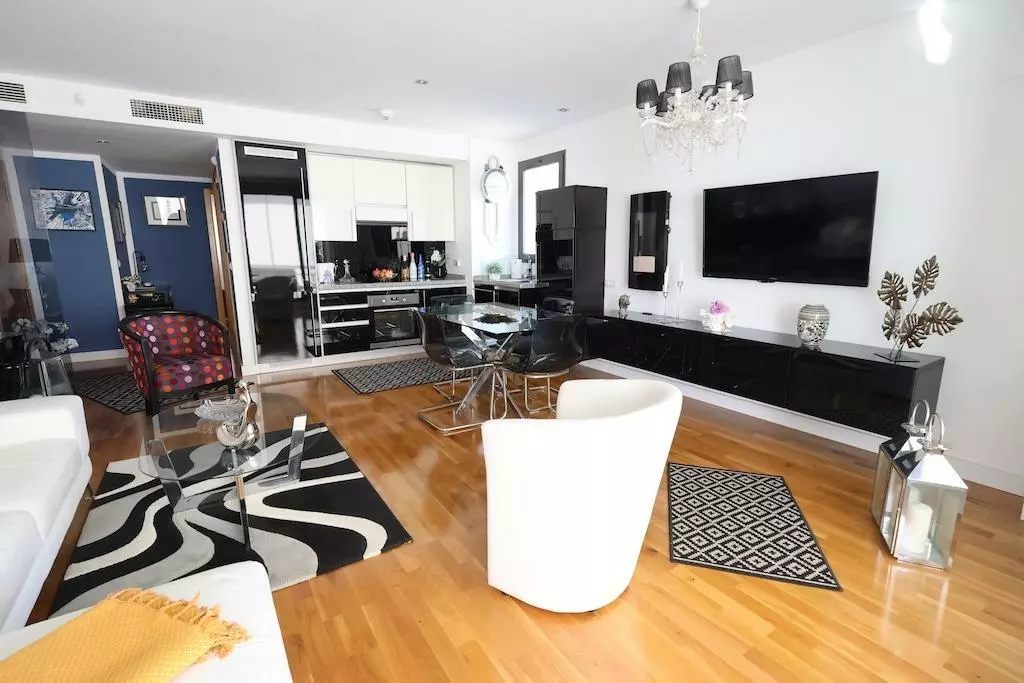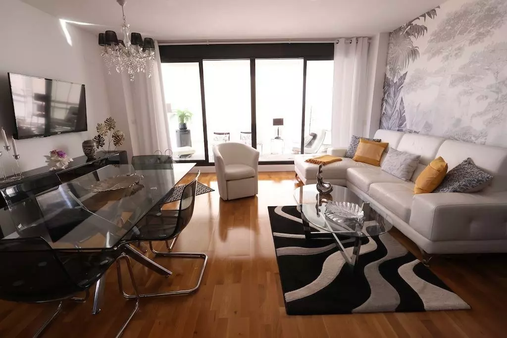 The apartment spans 87 m² and includes 2 bedrooms and 2 full bathrooms, catering to various living arrangements. The layout features a large living-dining area that flows into an open-plan kitchen, making it ideal for daily activities and entertaining guests. Additionally, a glazed terrace enhances the living space and allows for year-round enjoyment.