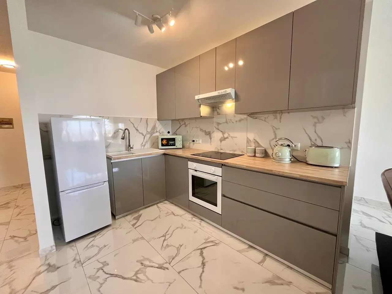 Recently renovated, the apartment includes many high-quality upgrades throughout. The open-plan living and dining area connects seamlessly to a modern fitted kitchen, creating a bright environment.