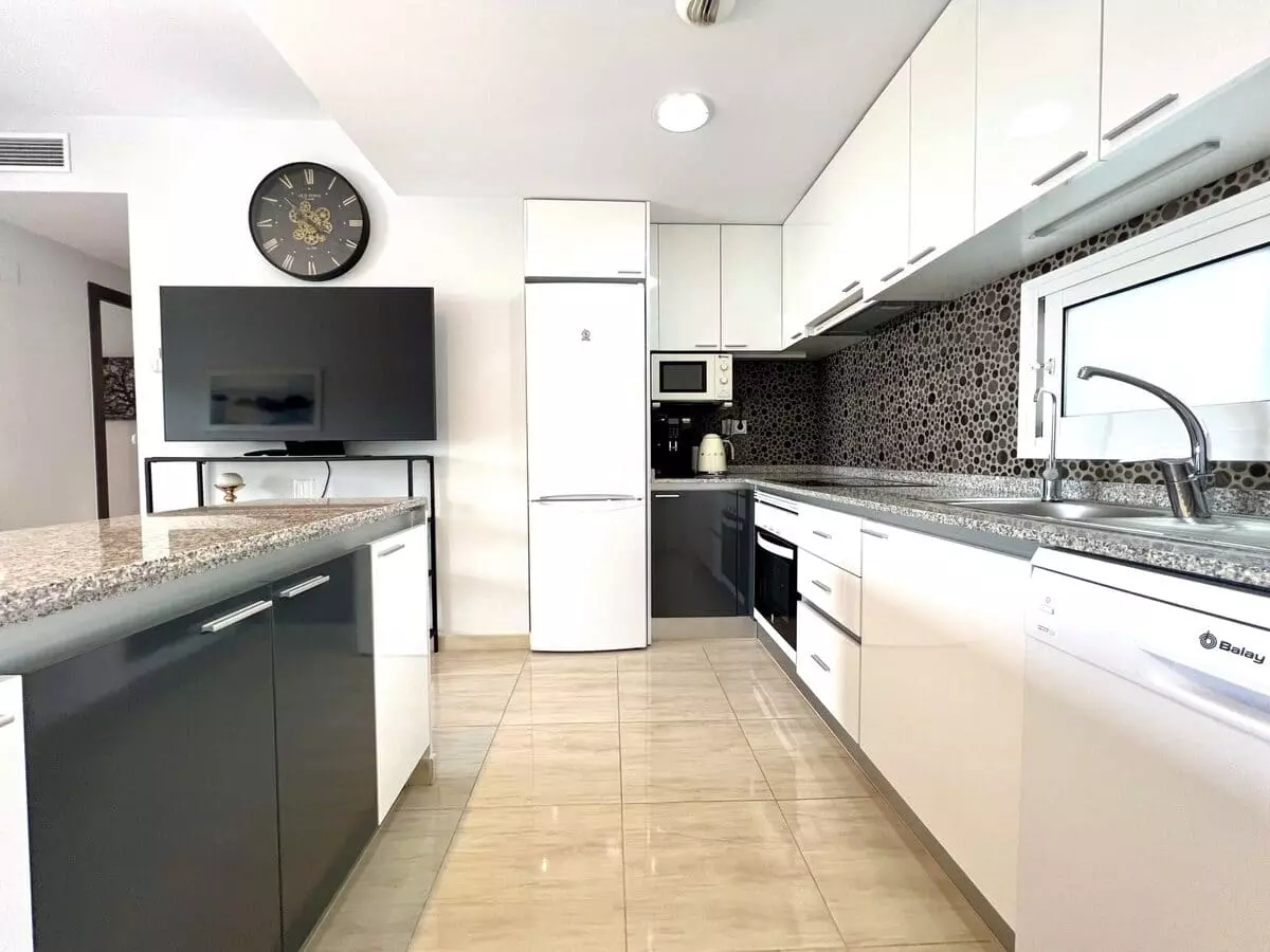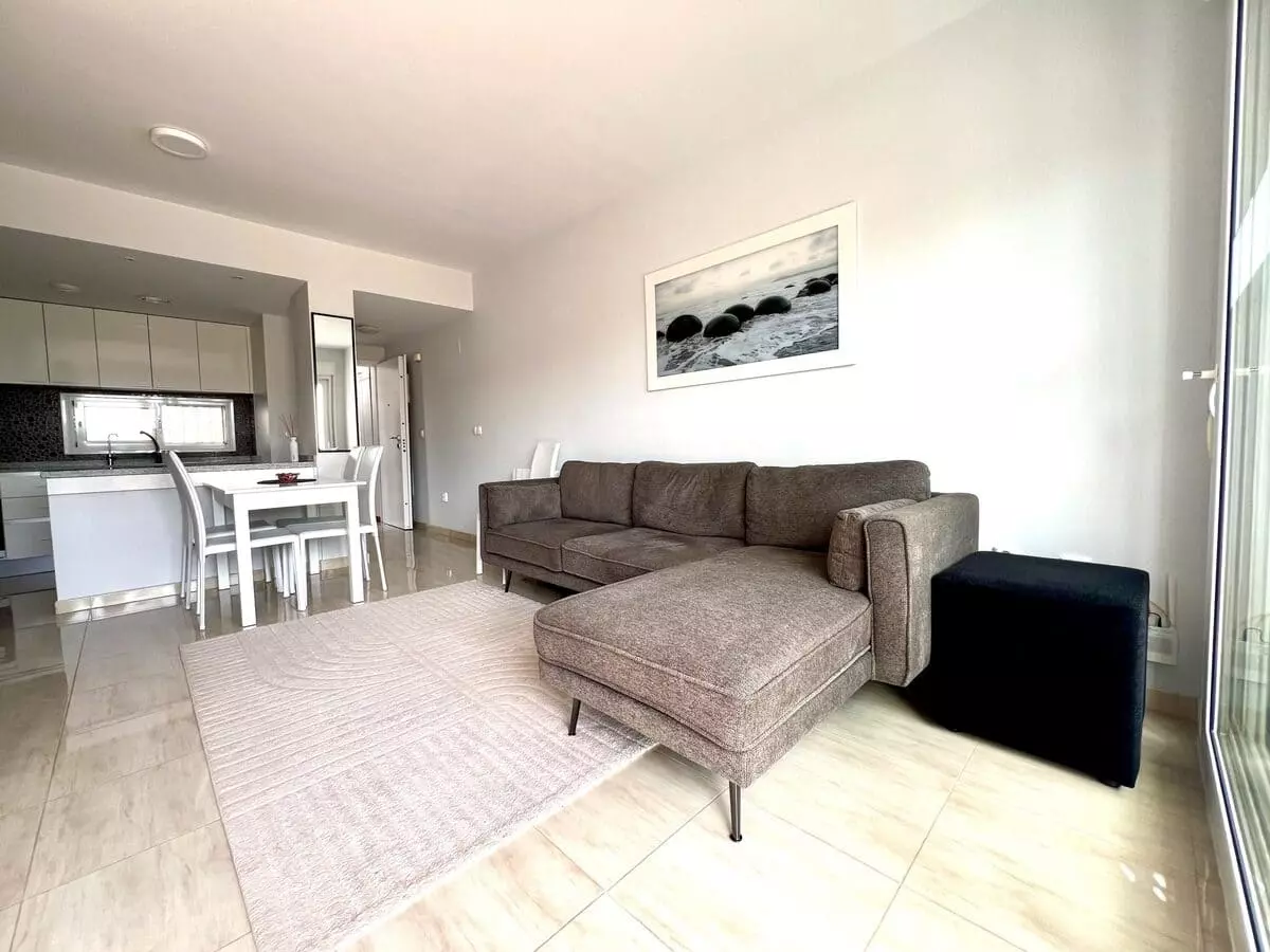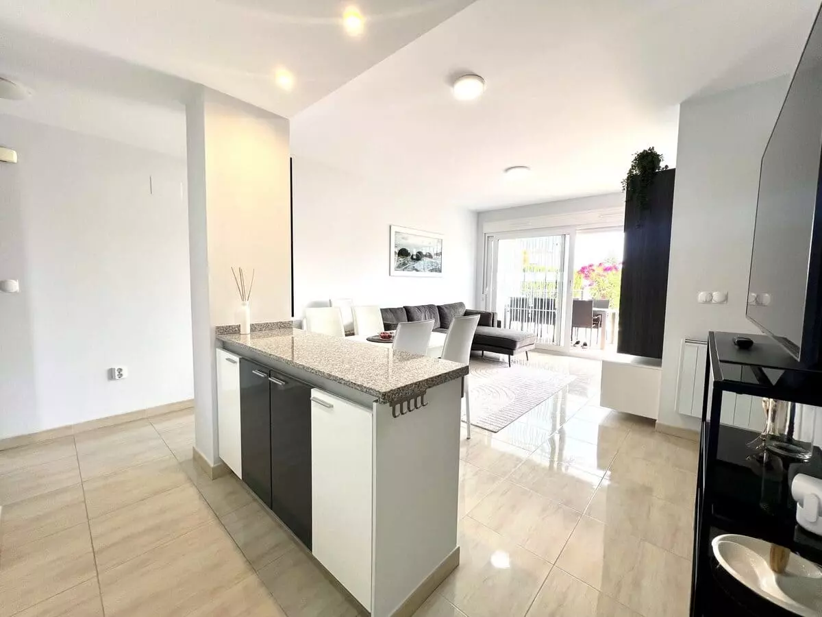 This apartment comes complete with a modern integrated kitchen that includes a utility room for added convenience. The living room is bright and includes a dedicated dining area, making it easy to move around and utilize the space effectively. Adjacent to the living room is a south-facing terrace that leads to a small garden area, ideal for those who appreciate outdoor space. Additionally, there’s designated parking available for a vehicle.