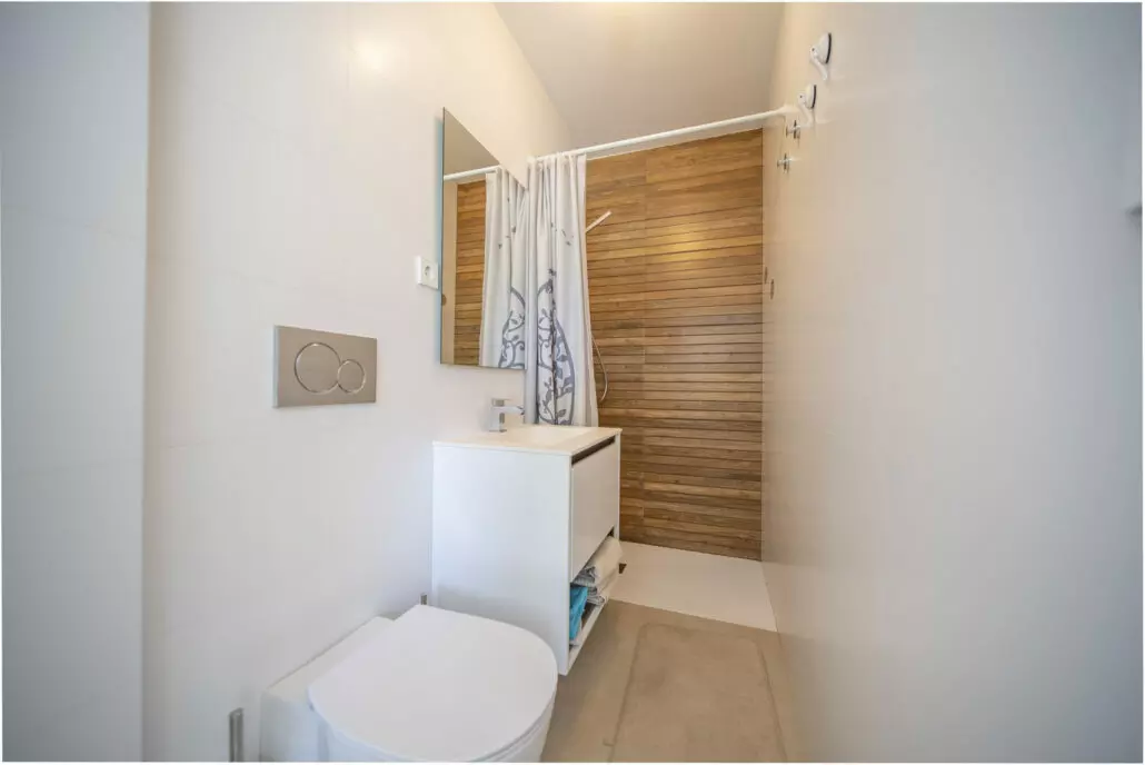 This apartment features two bedrooms equipped with fitted wardrobes, making storage simple and organized. One of these bedrooms has an en-suite bathroom, providing added privacy. There’s also a family bathroom, serving the second bedroom and guests alike.