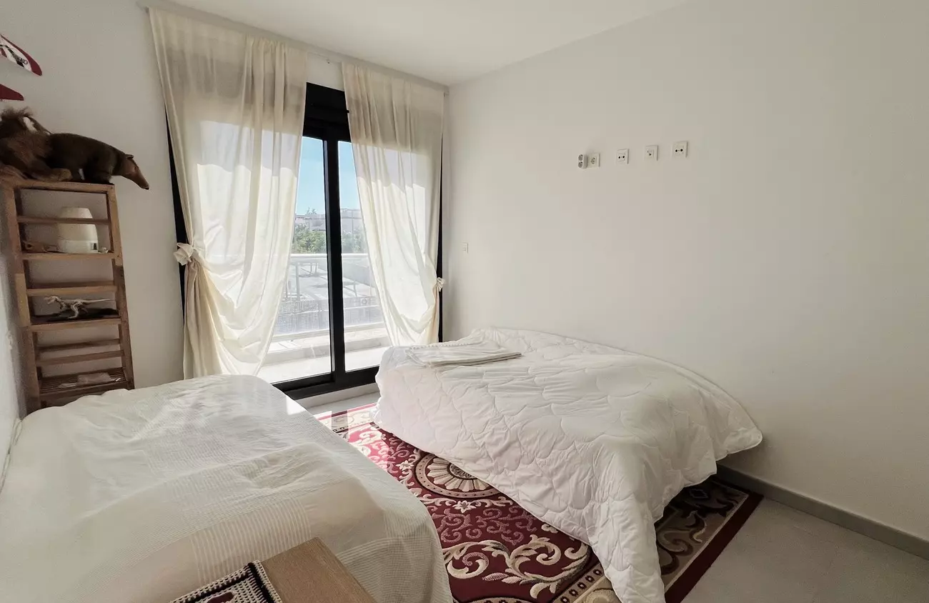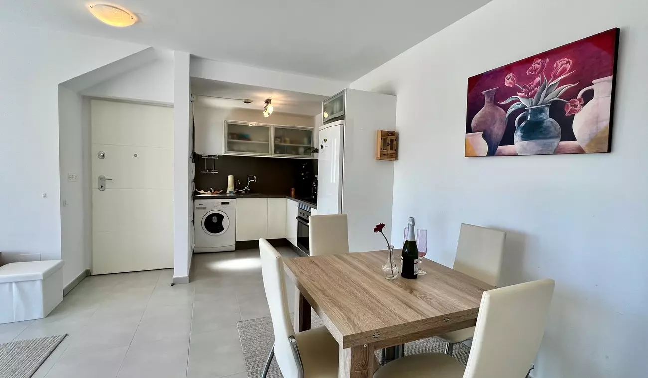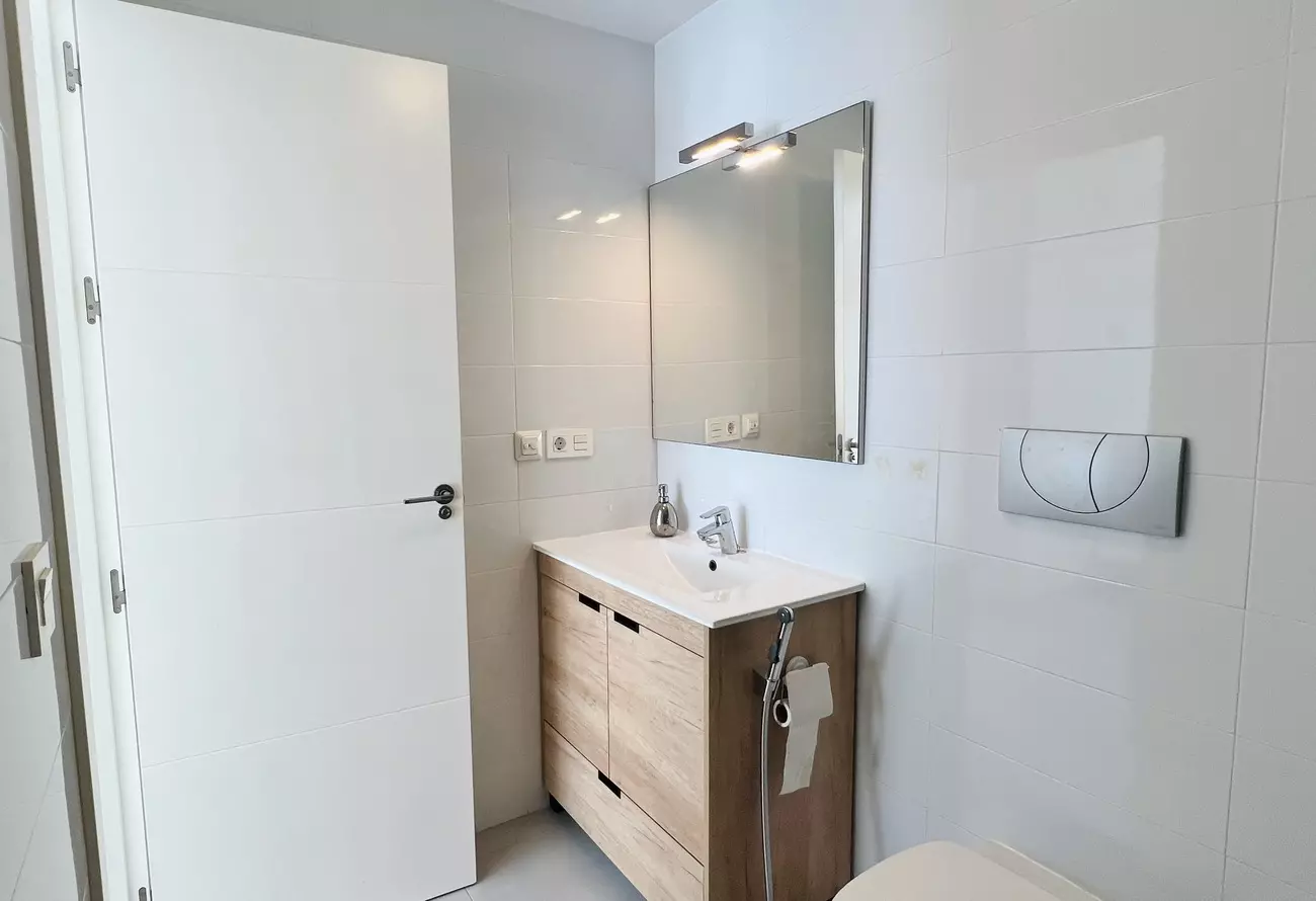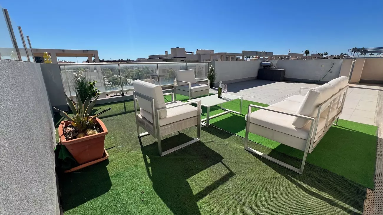 Located in the Mil Palmeras urbanization, this top-floor end-unit apartment features two bedrooms and two bathrooms. Built in 2016, the property is sold fully furnished and offers immediate move-in availability. With a total area of 66 square meters, it provides a practical layout optimized for living.