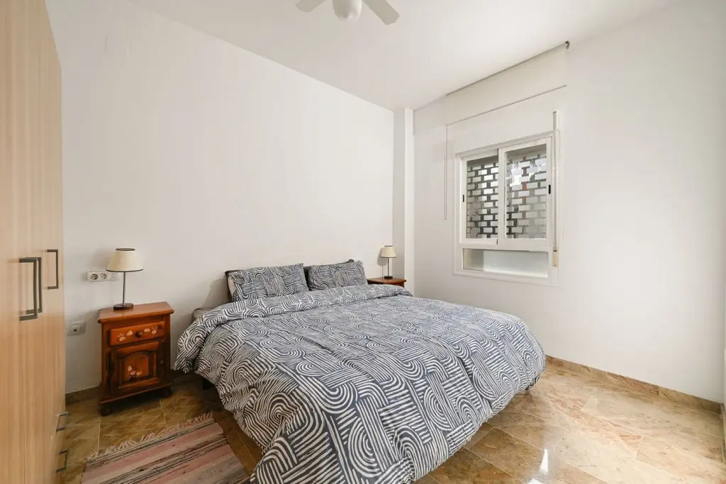 Inside, the apartment is laid out with practicality in mind, aiming to make the most of the available space and ensure comfort for occupants. The kitchen is fully fitted with all necessary appliances. For climate control, the apartment is equipped with both hot and cold air conditioning. The flooring throughout the living areas and bedrooms is made of marble. The apartment’s orientation is southwest, which allows for good natural light throughout the day. Stepping out onto the terraces, which are covered and private, residents can enjoy views of the communal gardens and the swimming pool.
