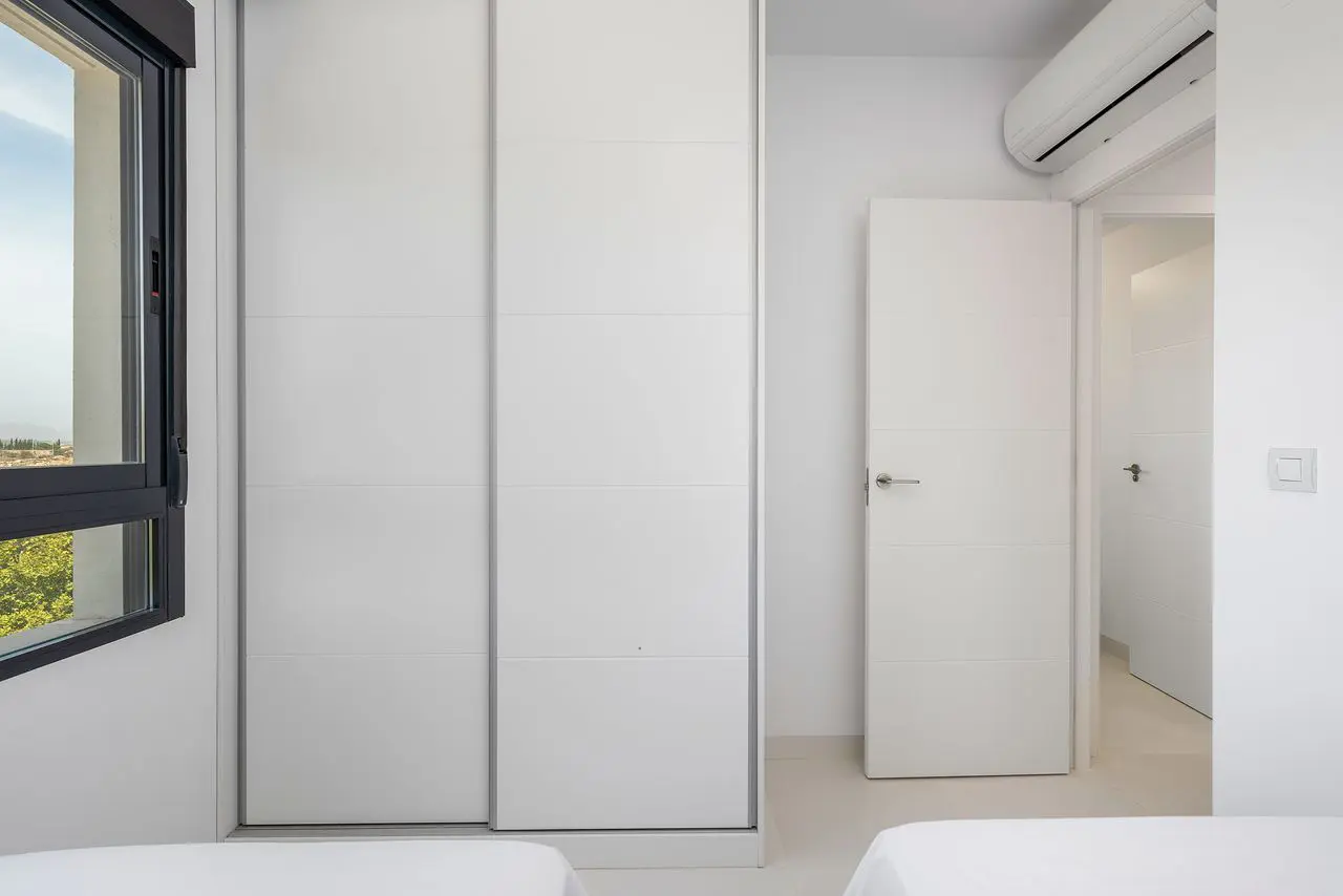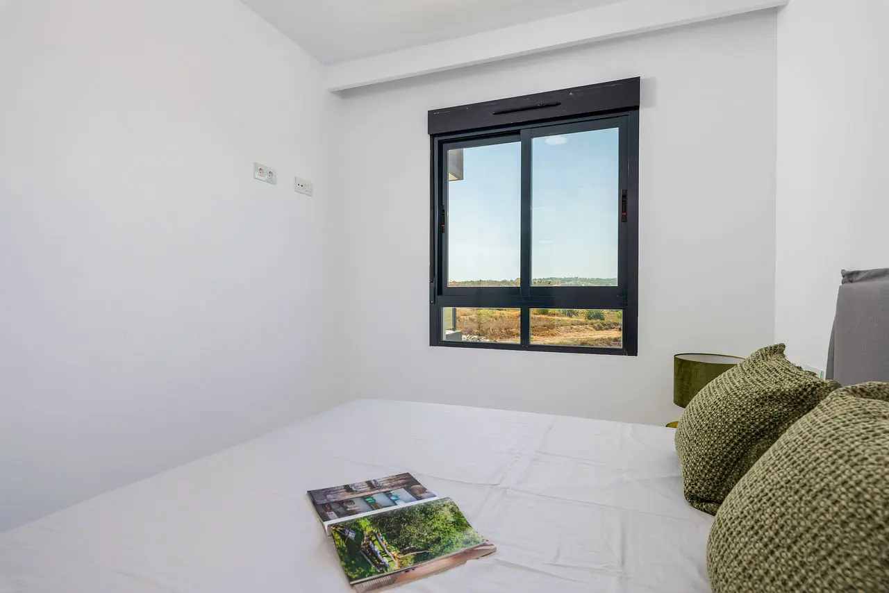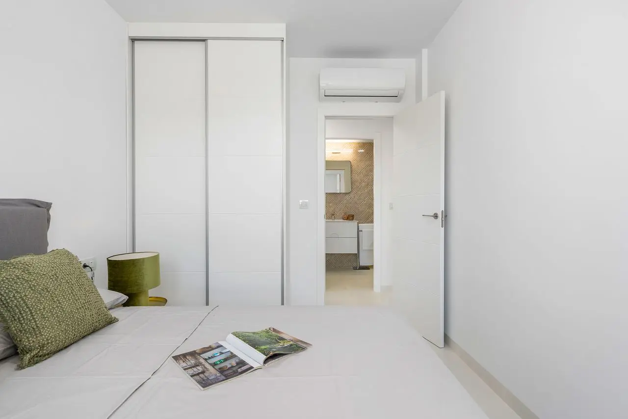 This beautiful 2-bedroom second floor apartment with terrace is situated in the sought after area of San Miguel de Salinas, within walking distance to all local bars, supermarkets and restaurants. The property will be sold fully furnished and consists of a bright living/dining room, a fully equipped open plan kitchen, two bedrooms with fitted wardrobes, two bathrooms with underfloor heating, and a sunny terrace. Storage room and parking space in the underground garage is also included in the price. There is a beautiful communal garden with swimming pool to enjoy the Spanish weather all year long! Close to all amenities and several leisure areas nearby such as beautiful golf courses, many shopping centres, and only 10 minutes from the pristine white sandy Orihuela Costa/Torrevieja beaches and La Zenia Boulevard shopping centre.