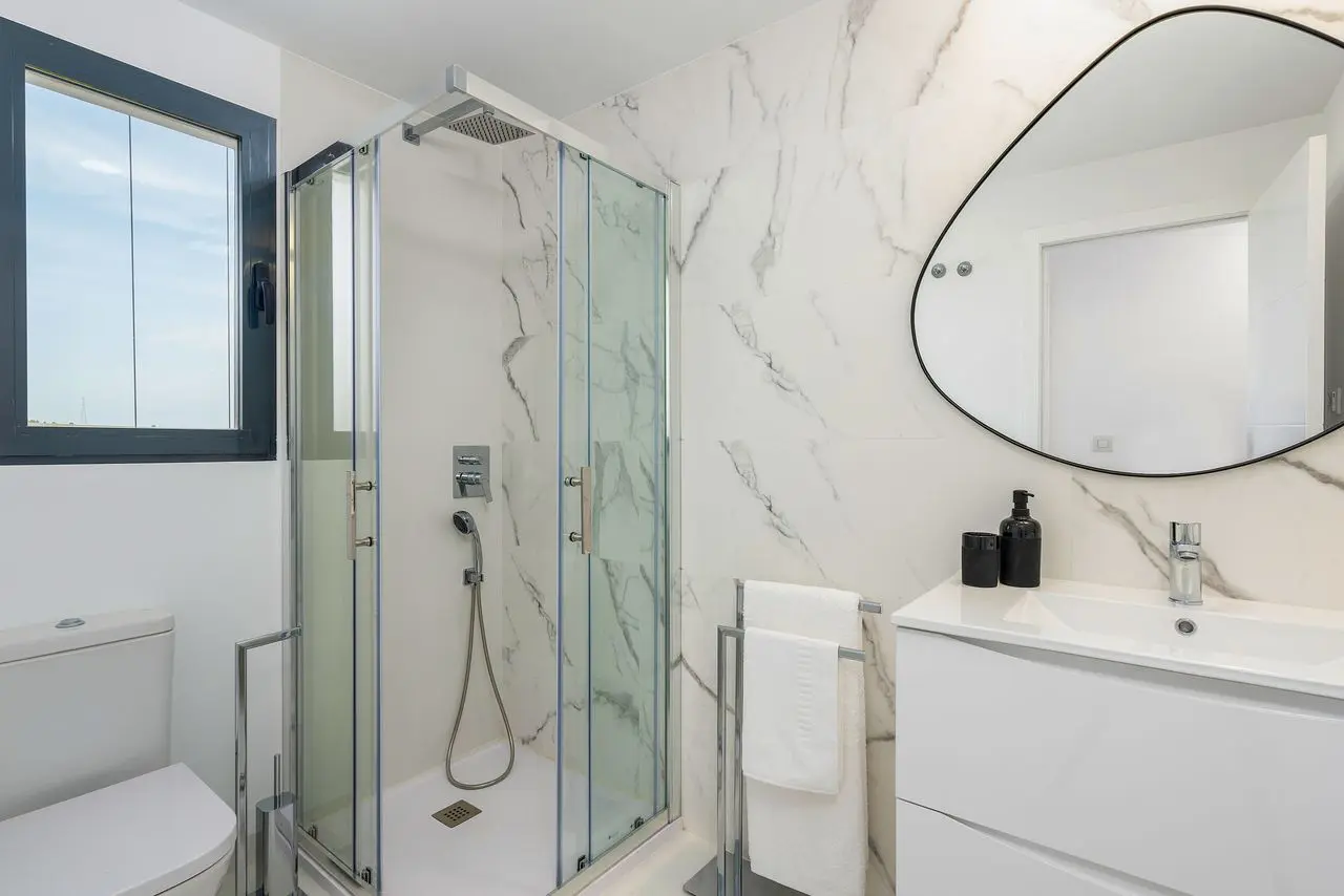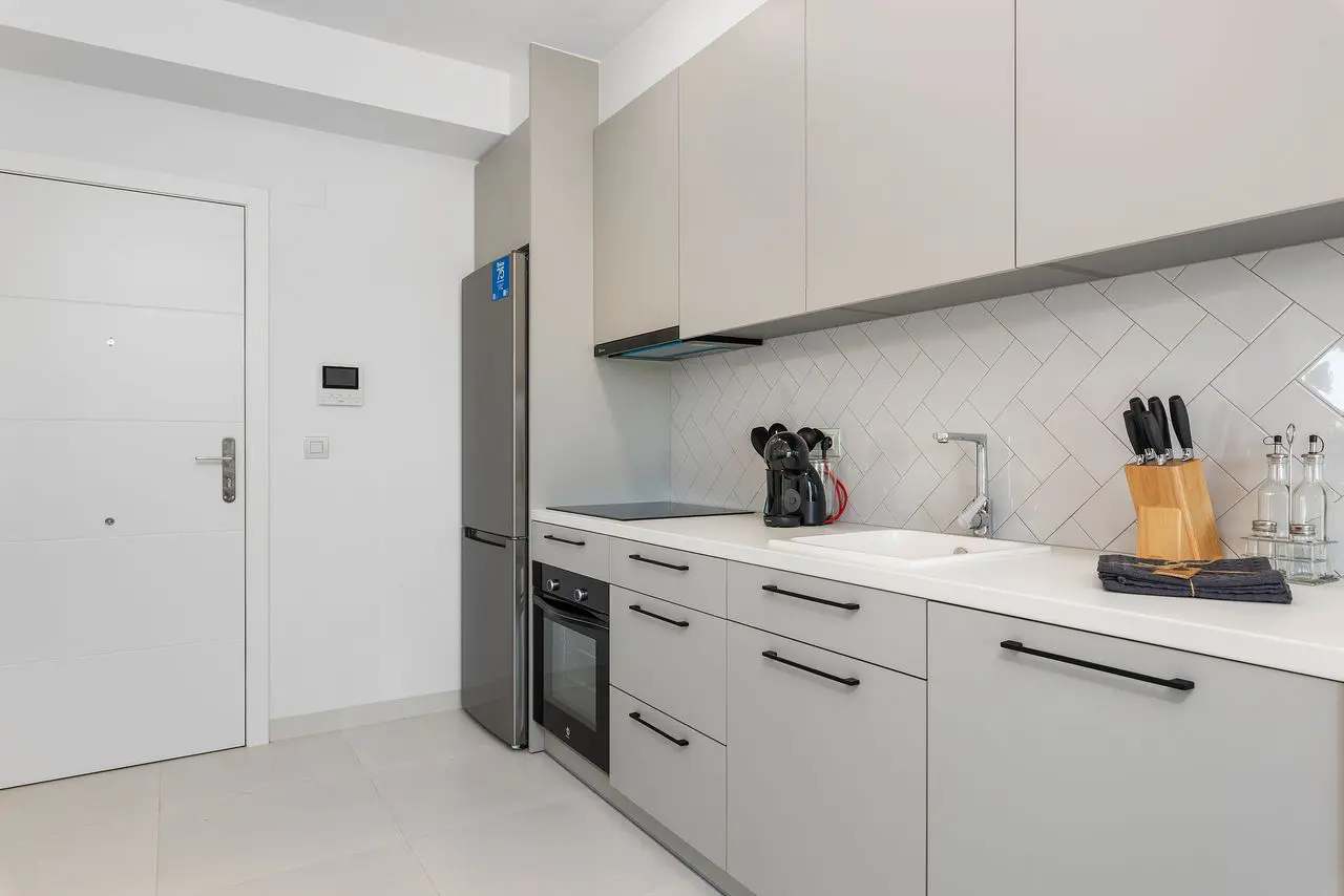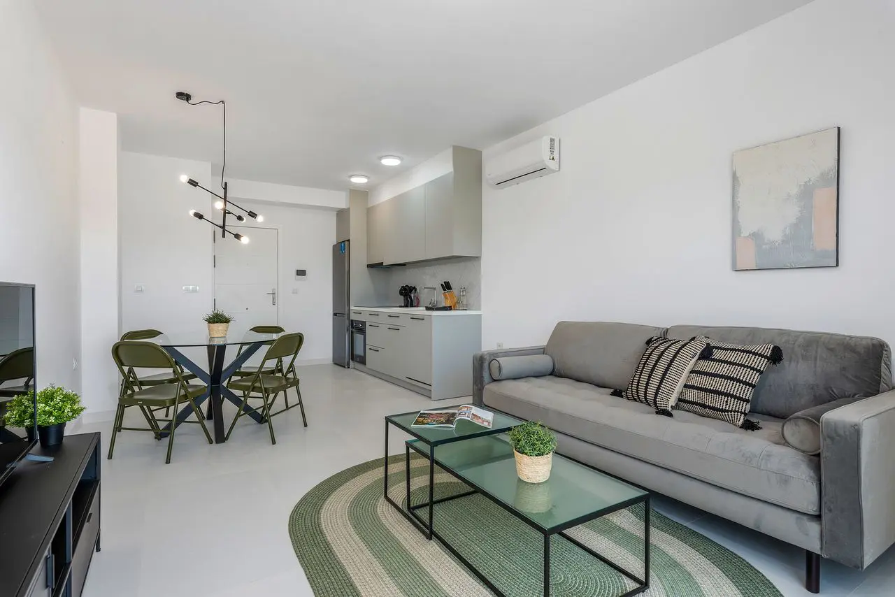 This beautiful 2-bedroom second floor apartment with terrace is situated in the sought after area of San Miguel de Salinas, within walking distance to all local bars, supermarkets and restaurants. The property will be sold fully furnished and consists of a bright living/dining room, a fully equipped open plan kitchen, two bedrooms with fitted wardrobes, two bathrooms with underfloor heating, and a sunny terrace. Storage room and parking space in the underground garage is also included in the price. There is a beautiful communal garden with swimming pool to enjoy the Spanish weather all year long! Close to all amenities and several leisure areas nearby such as beautiful golf courses, many shopping centres, and only 10 minutes from the pristine white sandy Orihuela Costa/Torrevieja beaches and La Zenia Boulevard shopping centre.