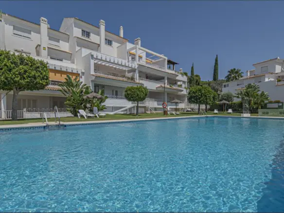 Apartment located on the beachside of Guadalmina Baja, one of the most exclusive and peaceful residential areas on the Costa del Sol. Situated on the second floor with no lift, the property forms part of a gated complex with beautifully maintained communal gardens, a swimming pool for adults and a children’s pool, offering a secure and pleasant environment.