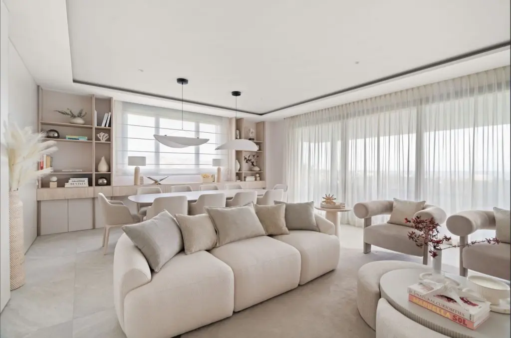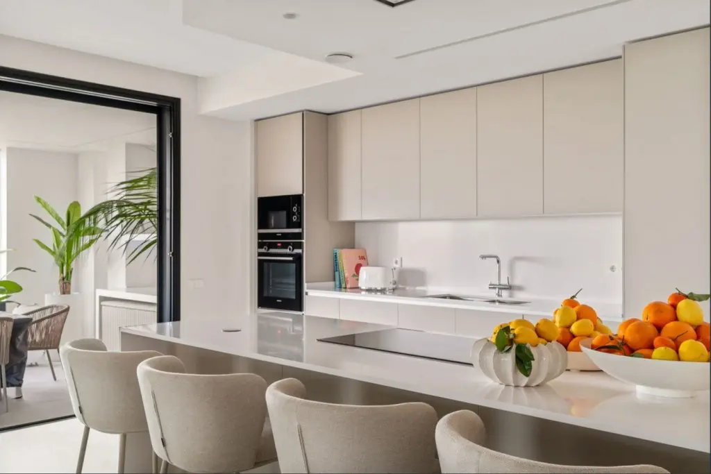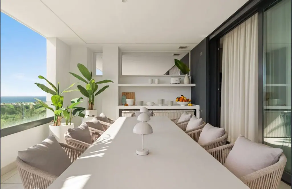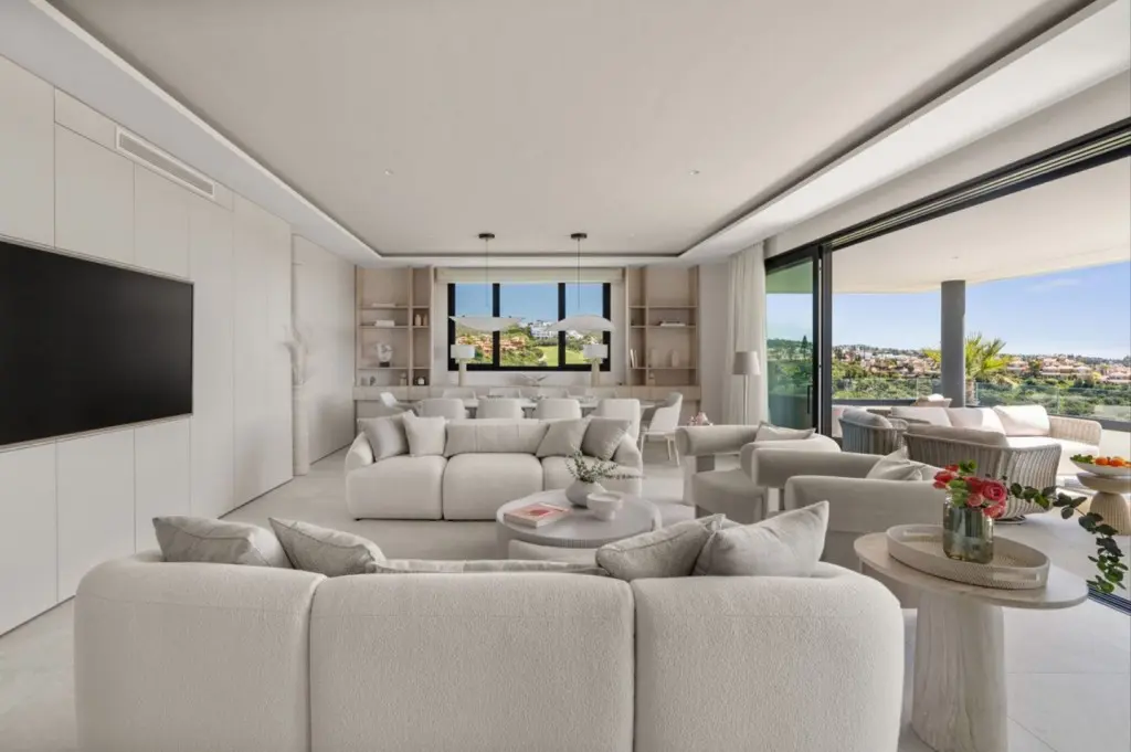 The property stands out for its generous proportions and well-designed layout, offering four bedrooms, four full bathrooms, and a guest toilet. The fully fitted kitchen flows seamlessly into a bright living and dining area, which opens onto a spacious southeast-facing terrace — perfect for enjoying the climate and panoramic scenery. The apartment is sold fully furnished with bespoke designer furniture and high-quality finishes.