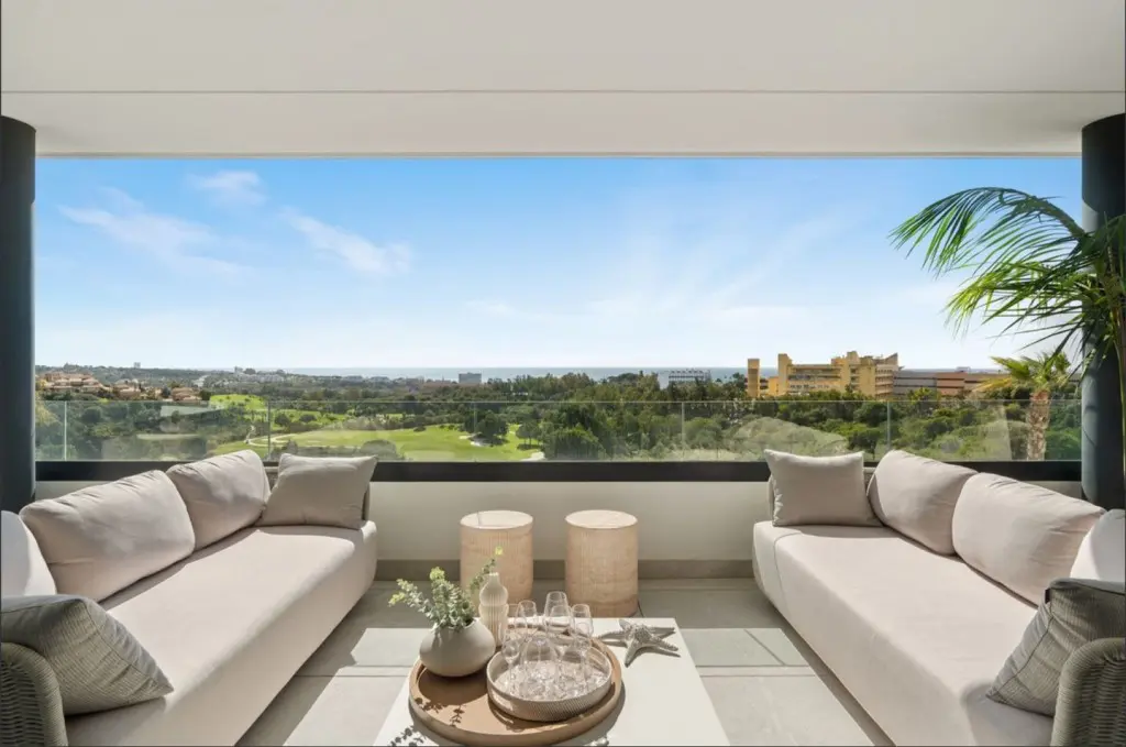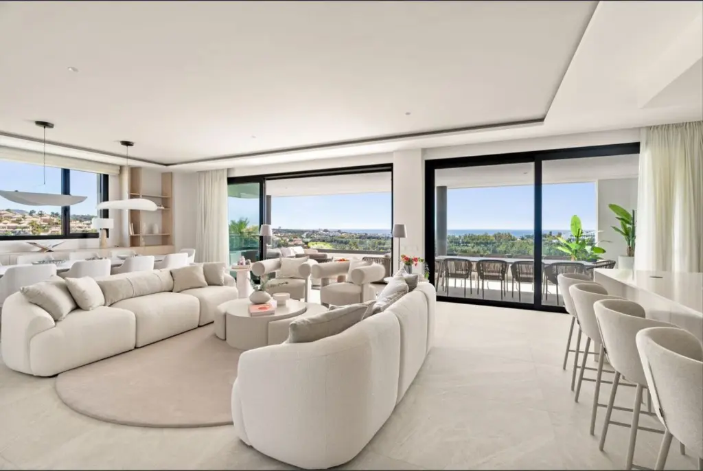 Located frontline to Santa Clara Golf, this exclusive apartment enjoys stunning open views of the Mediterranean Sea, the golf course, and the surrounding mountains, within a privileged setting in Marbella East.