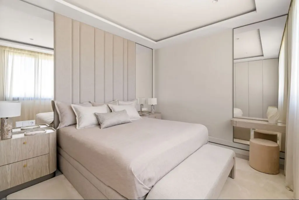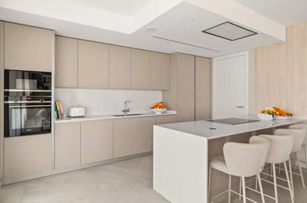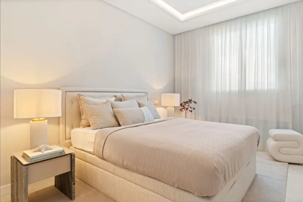 It features hot and cold air conditioning, underfloor heating throughout, smart home technology, electric blinds, and double glazing, ensuring comfort and energy efficiency. The price includes two underground parking spaces and a storage room. The gated community offers outdoor and heated swimming pools, a gym, sauna, Turkish bath, co-working space, and 24-hour security, just minutes from the beach and Marbella town centre.