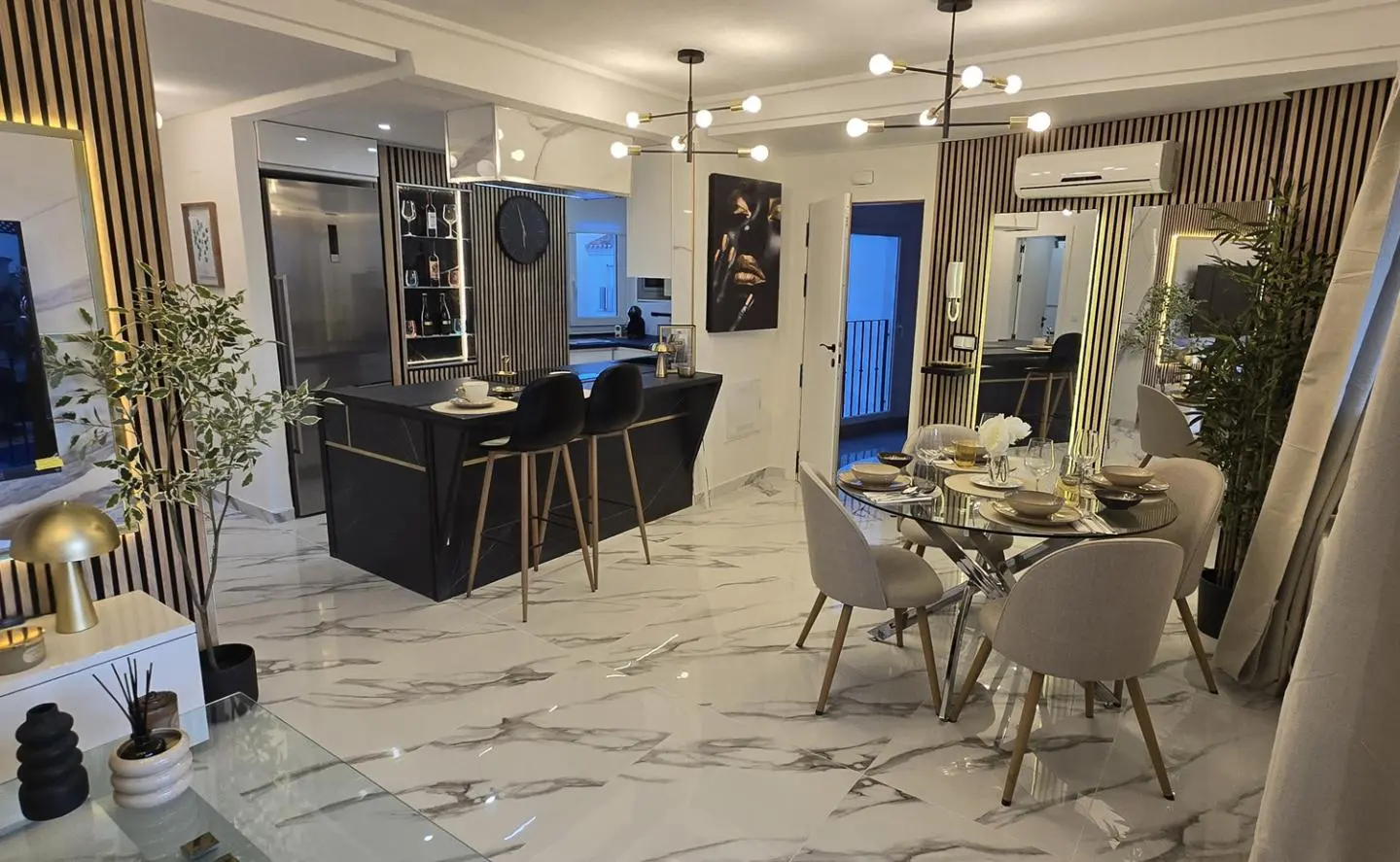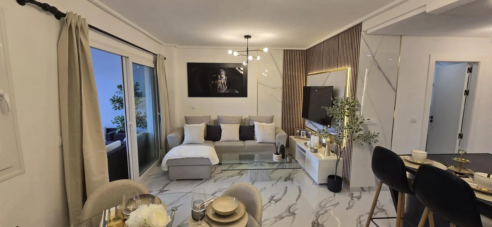 A fantastic opportunity to buy a fully modernised second floor apartment located in a great spot close to the clubhouse on Hacienda Riquelme Golf Resort in the Region of Murcia. The owner has upgraded everything in the apartment, including the floors, kitchen which is now open plan and re-fitted, new bathroom and so on. This stunning apartment must be seen to be appreciated! In brief, the apartment comprises an open-plan living room with media wall and sliding doors opening to a West facing terrace overlooking the pool. The kitchen is new and includes all the appliances. There are two double bedrooms with fitted wardrobes, ceiling fans and juliet balconies, plus a re-fitted bathroom. The apartment is being sold as seen, with furniture included and comes with a secure parking space in the underground garage (there is a lift to all floors). If you are looking for a property ready to move into – make sure you take a look at this one!