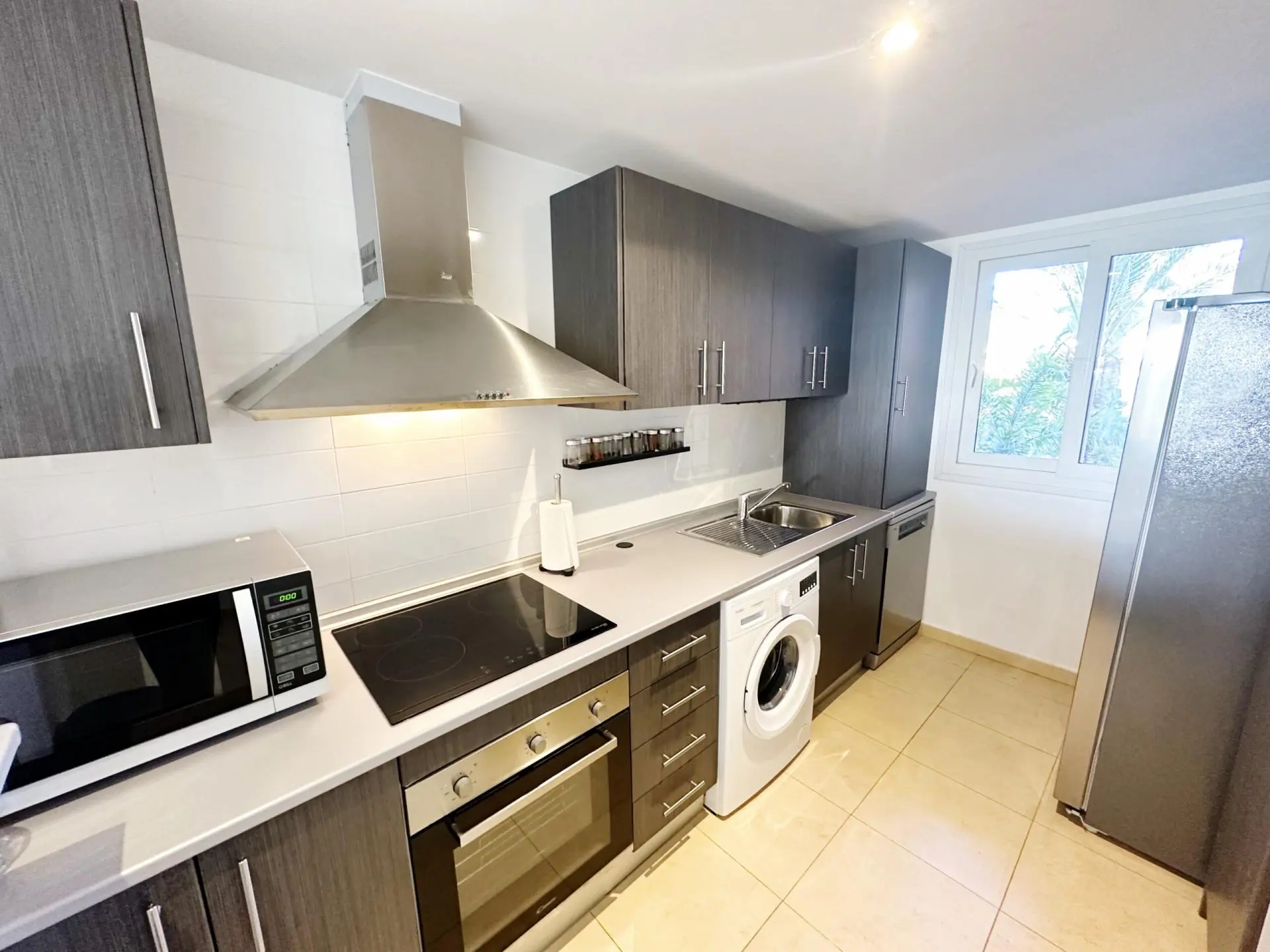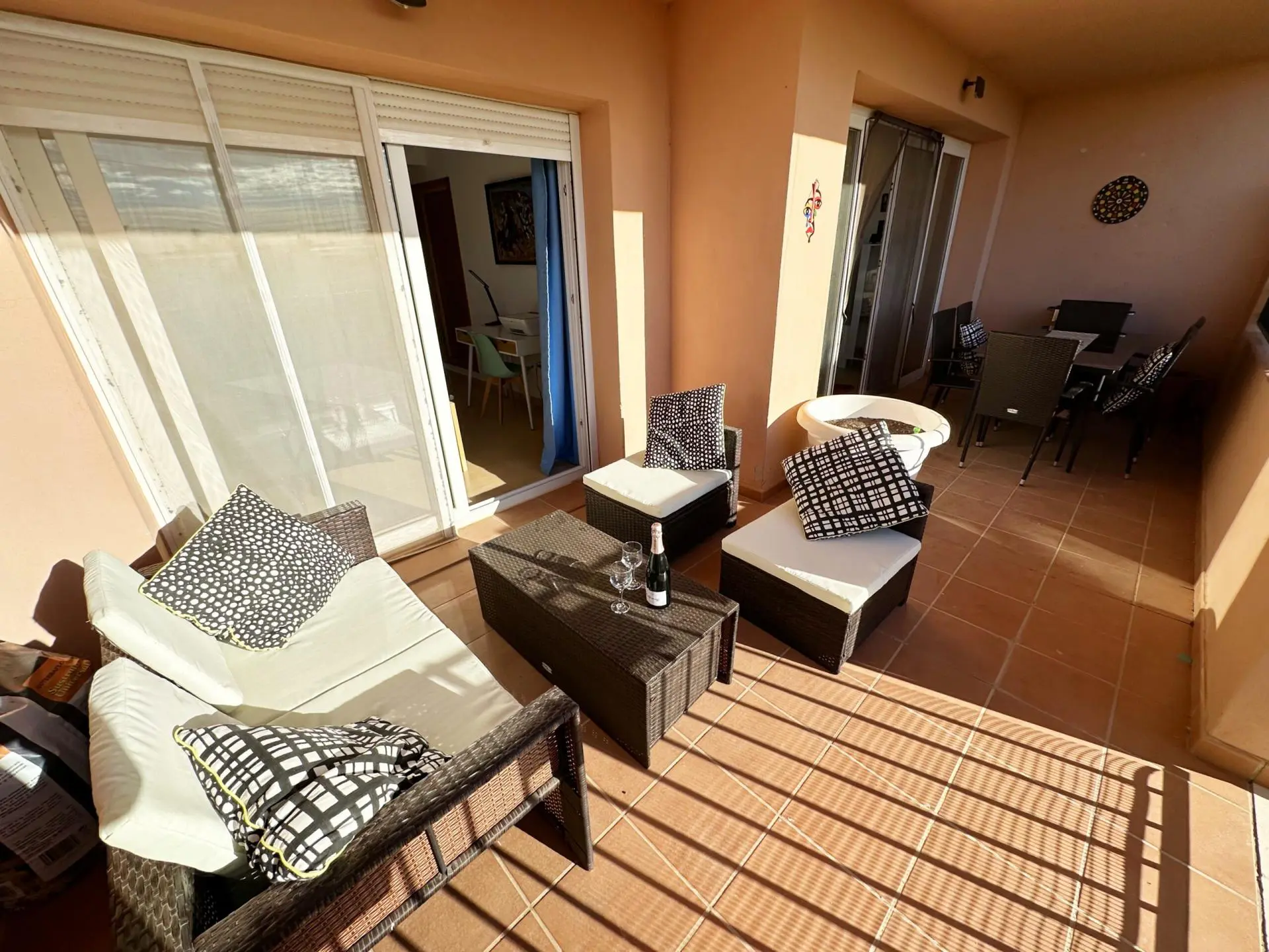 We are delighted to offer this two bedroom two bathroom west facing melvin apartment for sale on the Mar Menor Golf Resort. The apartment is situated just a short walk to the onsite supermarket and MMGR club with restaurant, mini golf, gym and padel courts. Just outside the resorts you have a variety of restaurants on the Boulevard. The apartment enjoys golf views and is being sold furnished with integral hot and cold aircon and allocated underground parking with lift access to the property. Murcia airport is a 20 minutes drive and Alicante approximately 1 hour. The wonderful Roman town of Cartagena is a short drive away along with the gorgeous beaches of La Manga. Entering the property into the spacious open plan living dining and kitchen area. The kitchen is galley style with all mod cons and breakfast bar. The lounge has patio door access onto the sunny terrace where you can enjoy frontline golf views. There are two double bedrooms both with fitted wardrobes, the master has an ensuite and access to the main terrace. The guest bedroom can enjoy its own private secluded terrace, perfect for a morning coffee. There is also a separate guest shower room. This property is in a great location on the resort. Please contact us to book a viewing appointment.